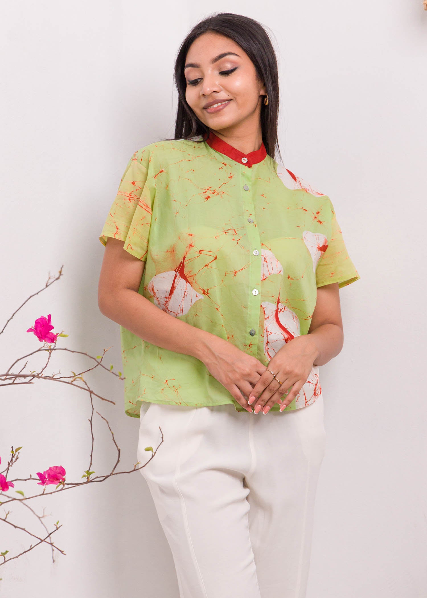 Name | Anthurium Printed Batik Top with Chinese Collar |