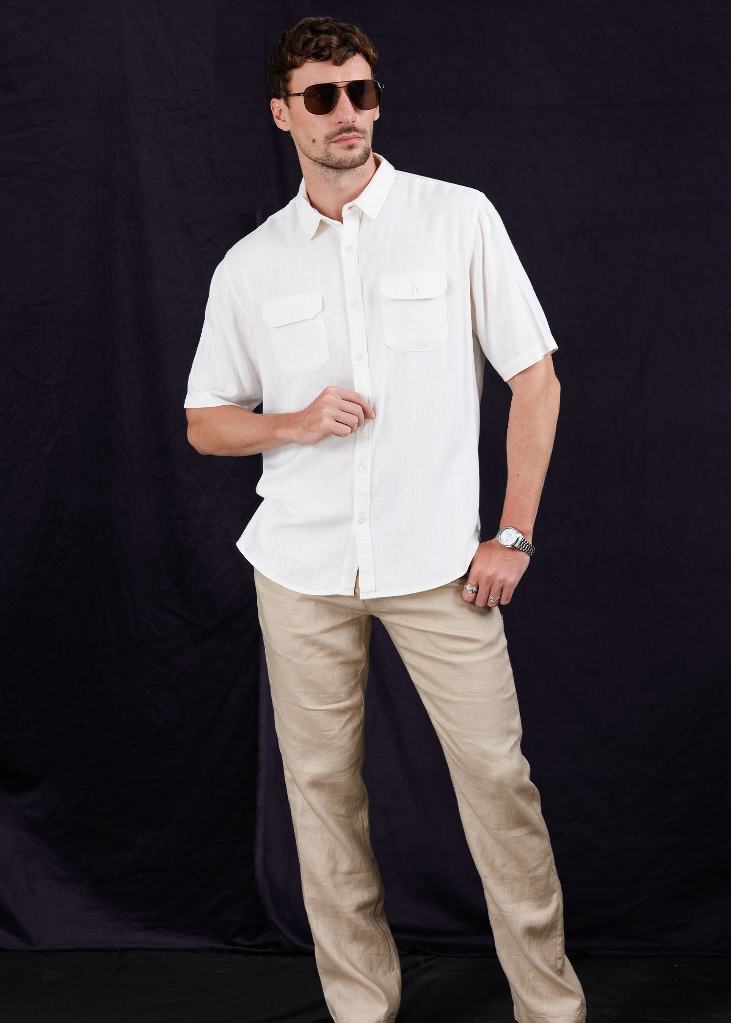 Relaxed style meets timeless design in the Linen Camp Collar Double Pocket Shirt, crafted from a blend of cotton and linen. Lightweight, breathable, and naturally textured, this shirt offers effortless comfort with a touch of sophistication.