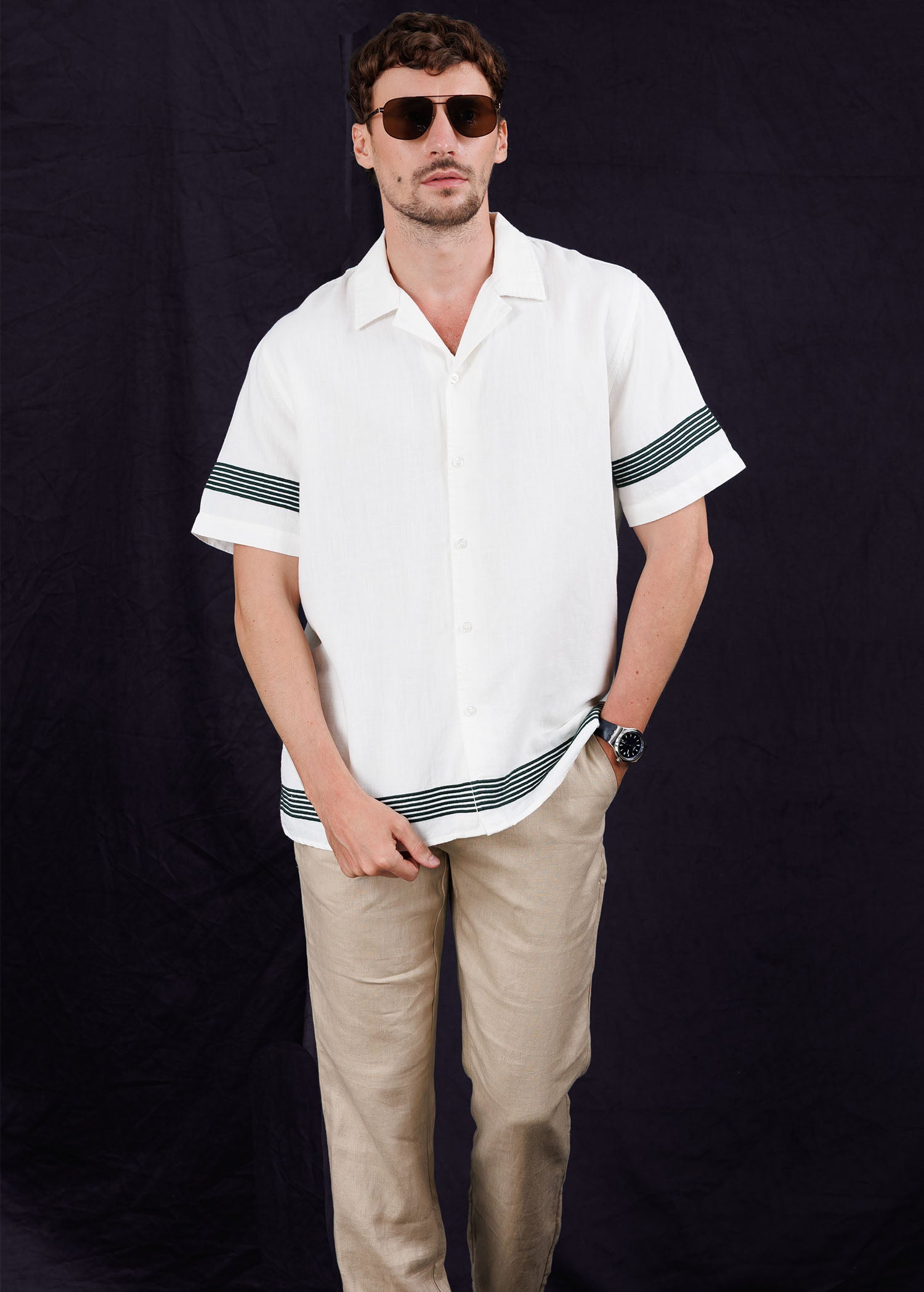 Elevate your look with the Linen Embroidered Short Sleeve Shirt, crafted from a cotton and linen blend for a breathable, lightweight feel. The embroidered detailing adds a refined touch, making it perfect for both casual days and semi-casual occasions.
