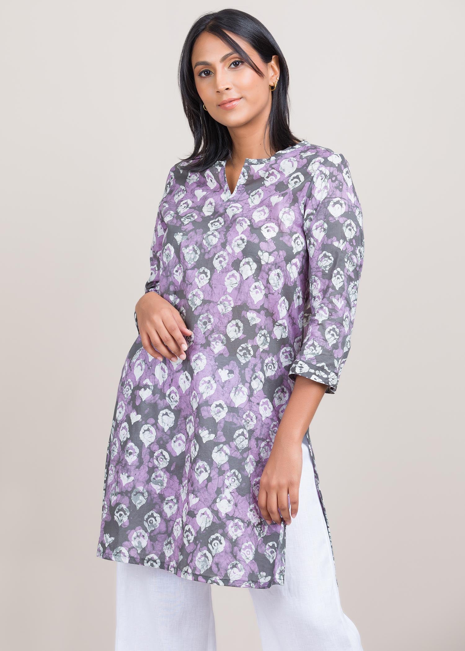 Model wears size 8. Made of pure cotton. Batik printed kurtha top for casual wear. Super comfortable to wear and gives you a classy look. Disclaimer - Colours may slightly vary from the picture.