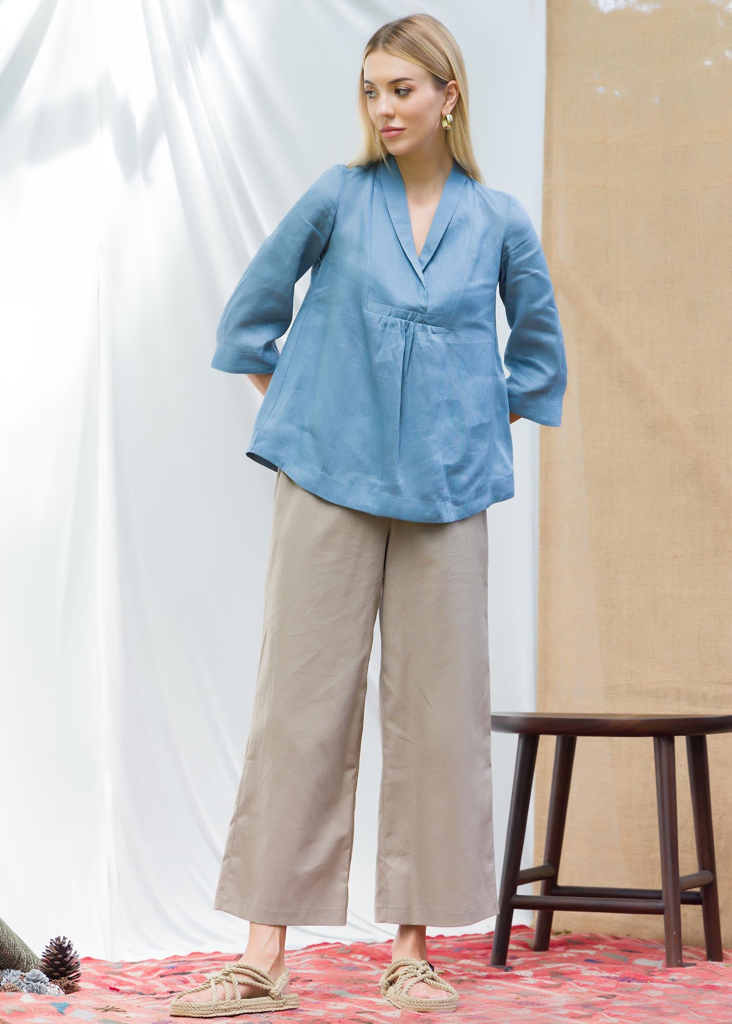 Model wears size 8. Made of 100% Linen. Front yoke blouse with three quarter sleeves for casual wear. Super comfortable to wear and gives you a classy look. Disclaimer - Colours may slightly vary from the picture.