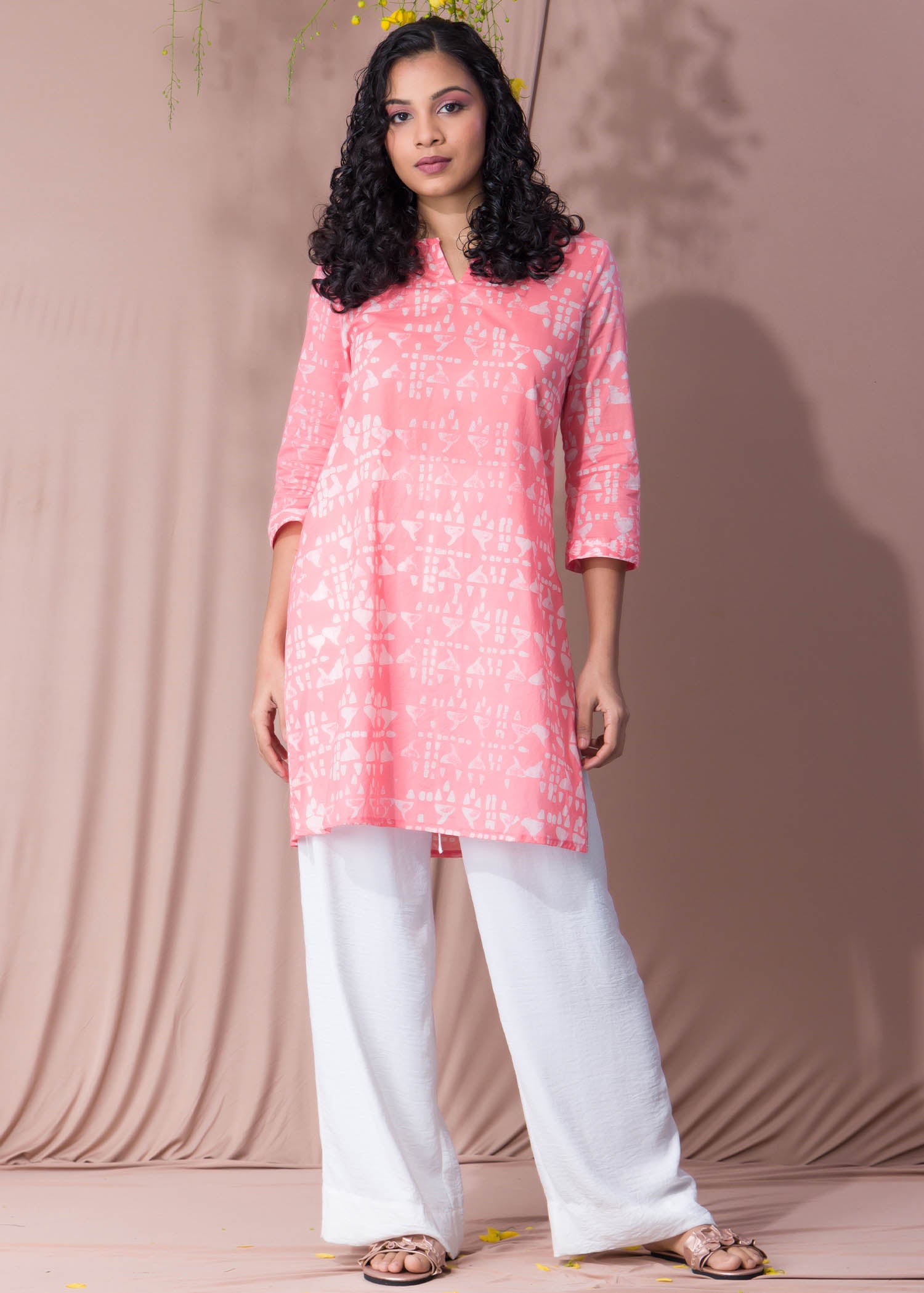 Peachy Pink Batik Kurtha Top for casual wear. Gives you a classy look.