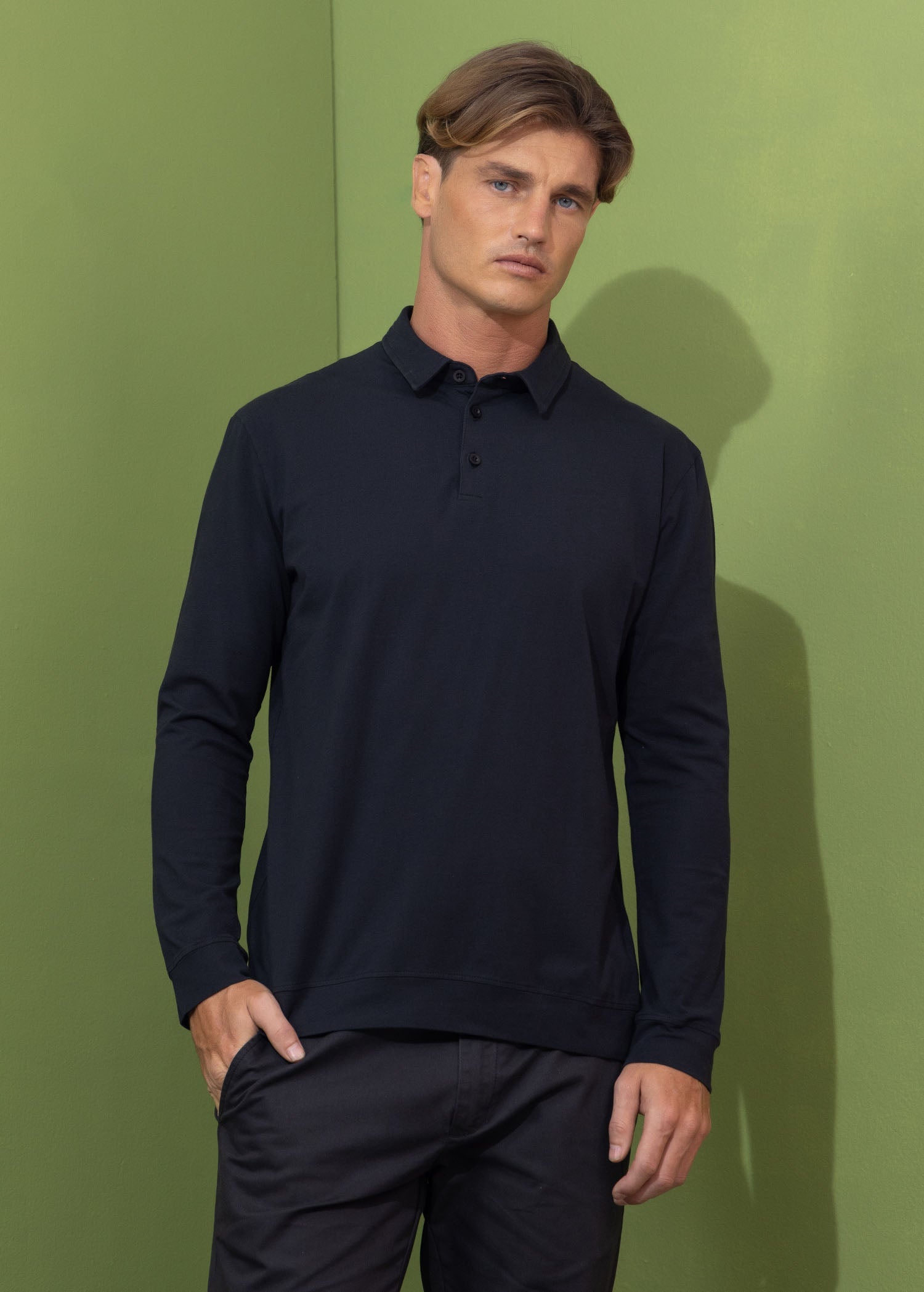 Casual wear self collar L/S T-shirt Model is wearing Large, Model height - 6ft. Made of 95% Cotton 5% Spandex . - Colours may slightly vary from the picture.