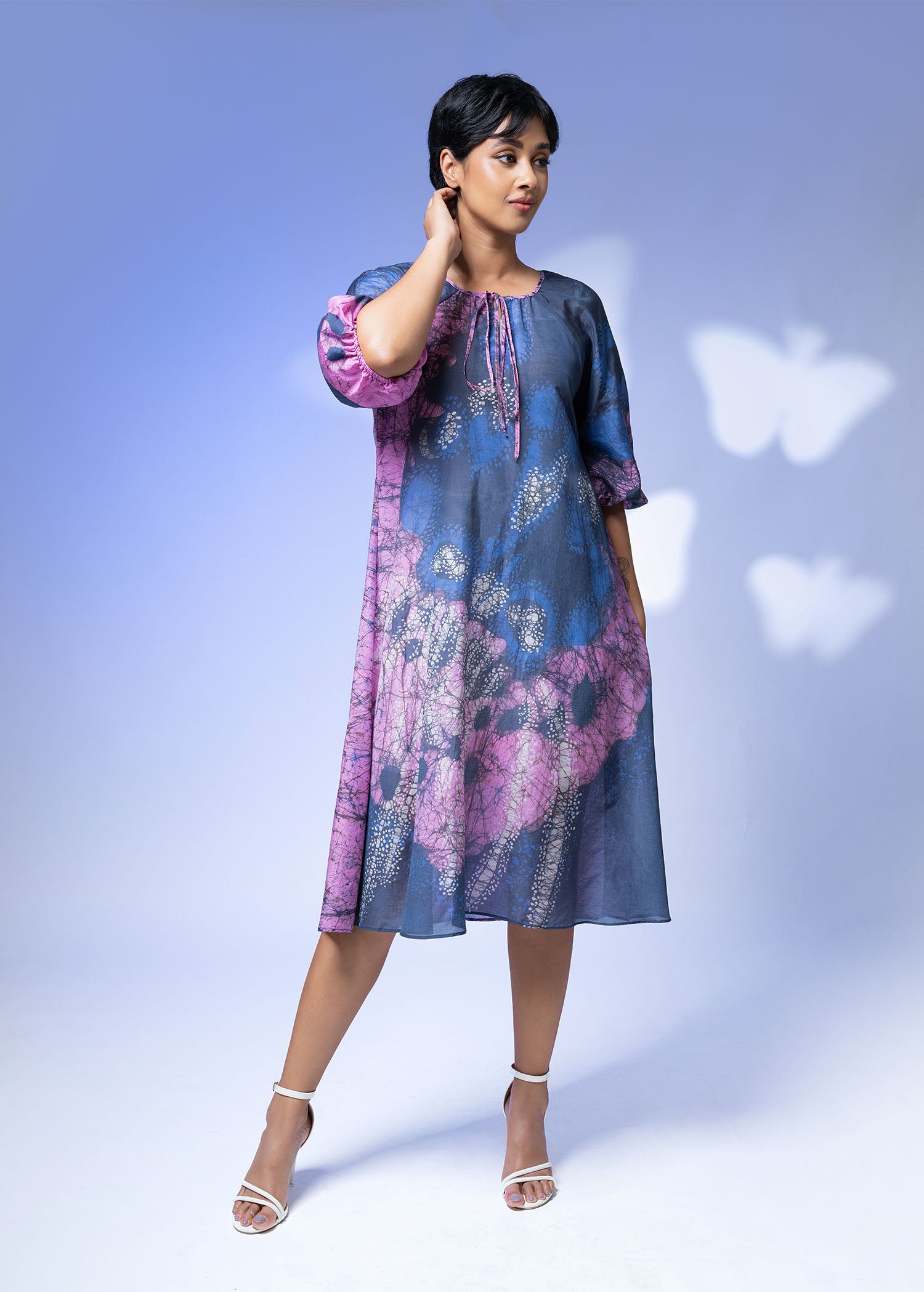 Name | Batik Puff Sleeve Front Key Hole Detailed Dress |