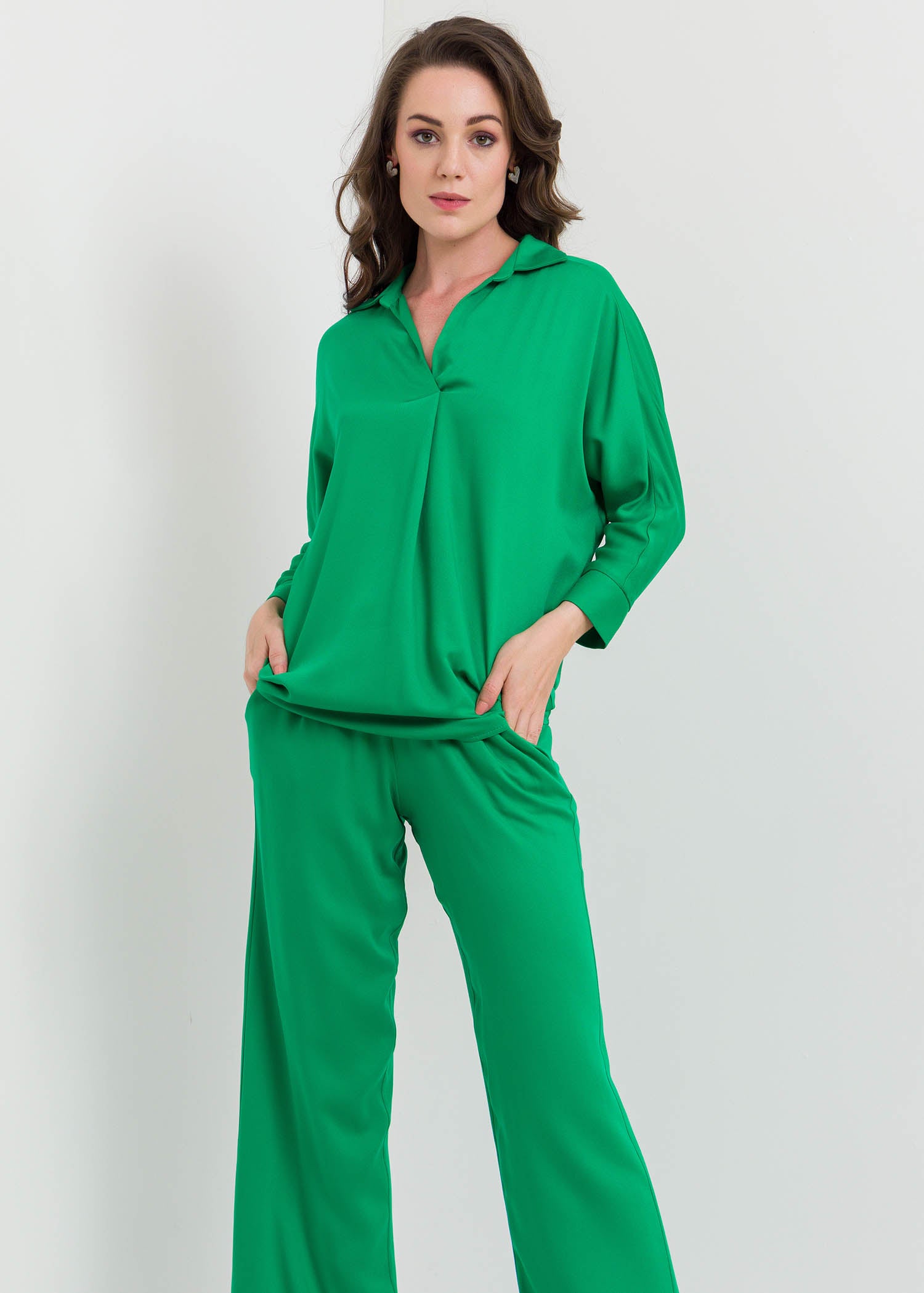 Dolman sleeve blouse with collar for casual wear. Gives you a classy look.