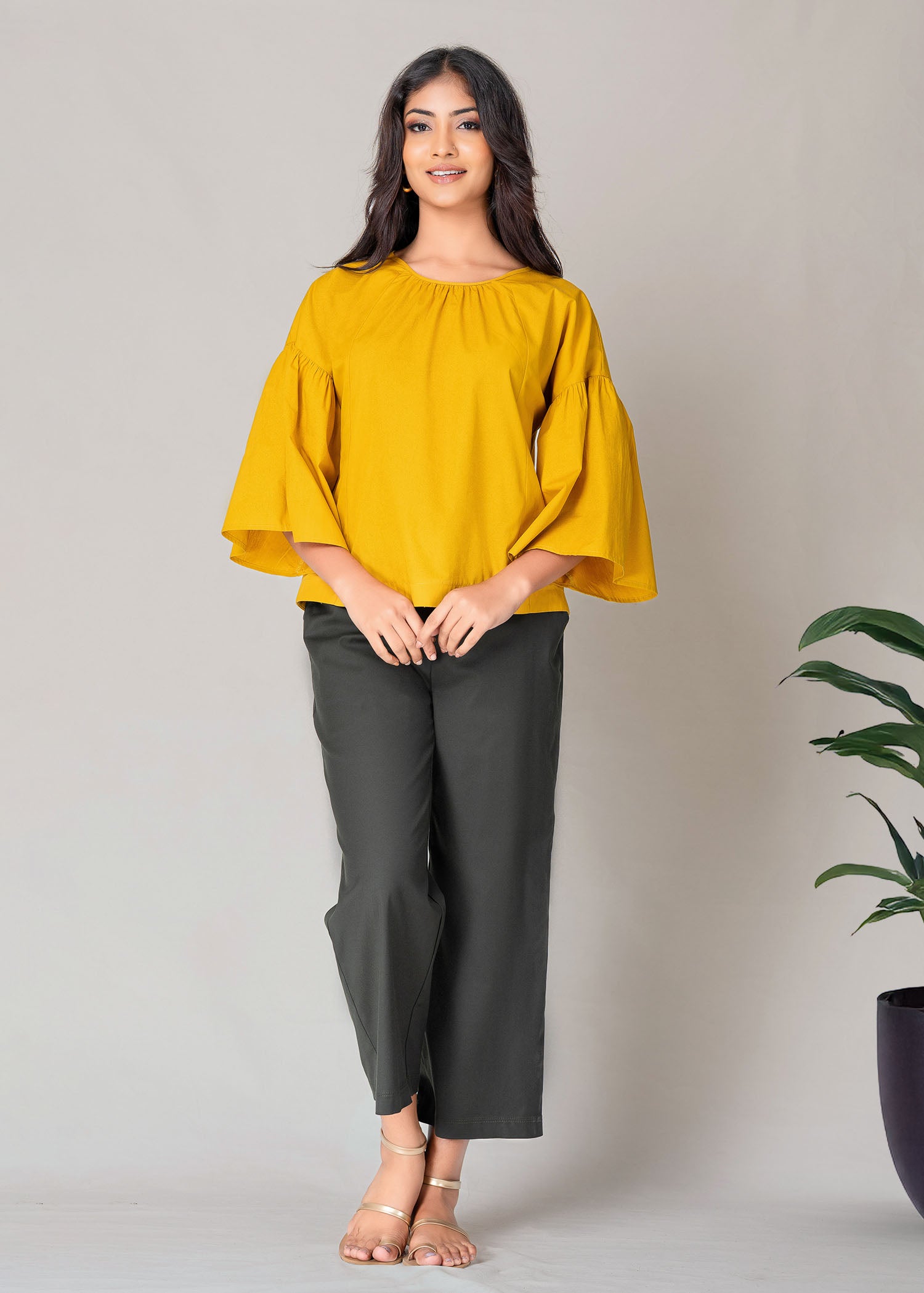 Flounce sleeve voluminous blouse for casual wear. Gives you a classy look.