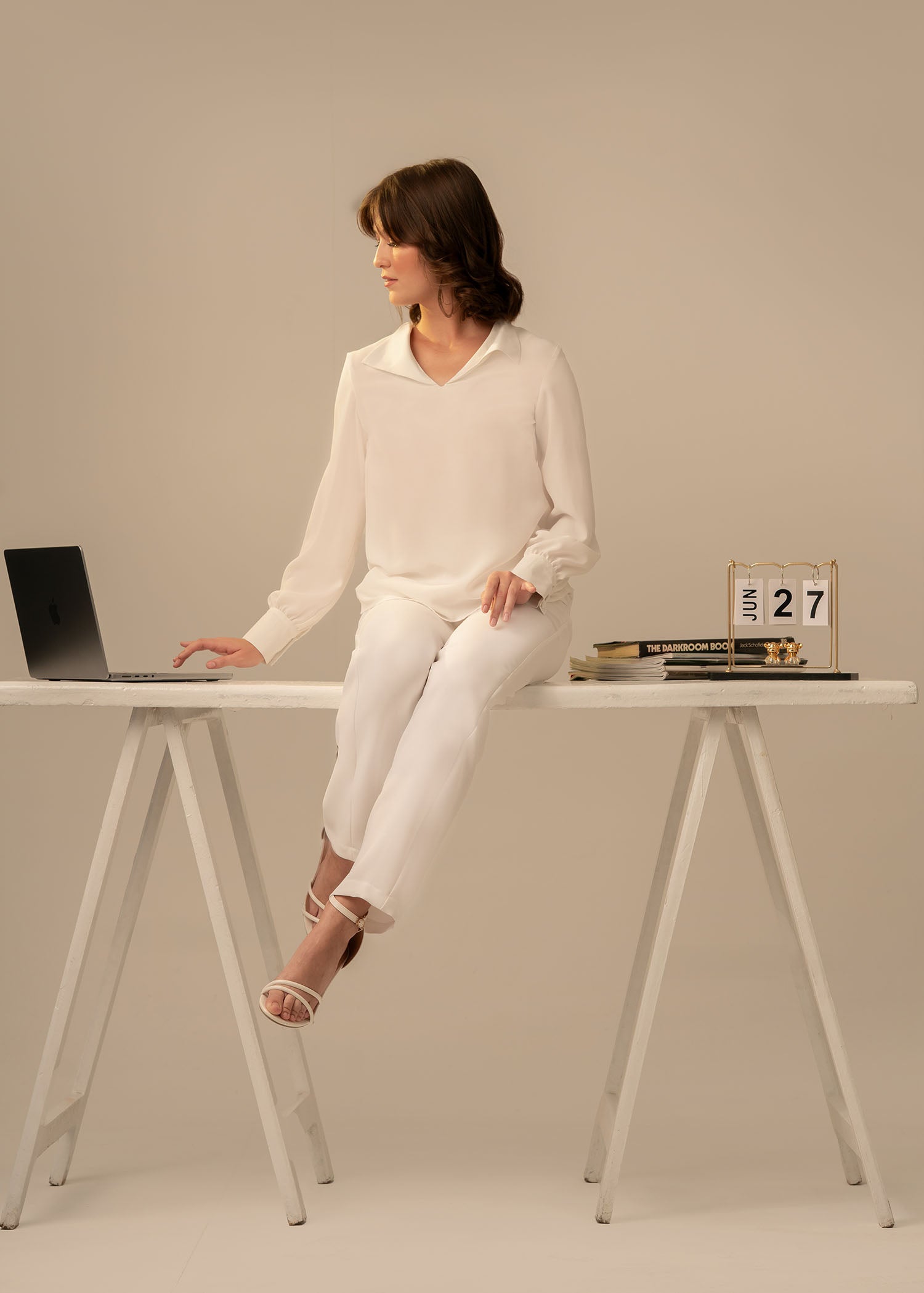 Flap collar detailed blouse for Formal wear. Gives you a classy look.