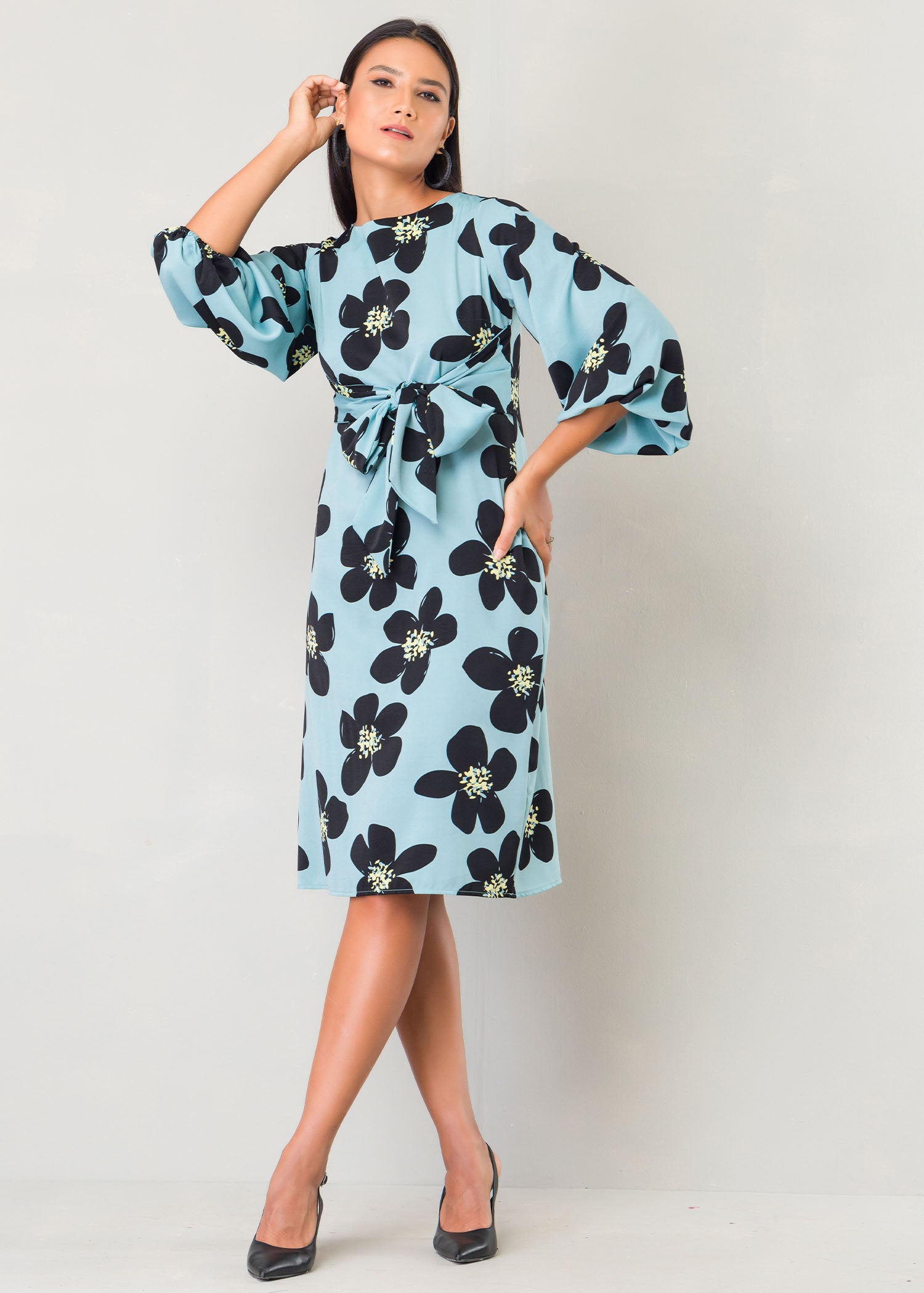 Model wears size 8. Made of 100% Polyester.Bold floral print dress with tie for casual wear. Super comfortable to wear and gives you a classy look. Disclaimer - Colours may slightly vary from the picture.