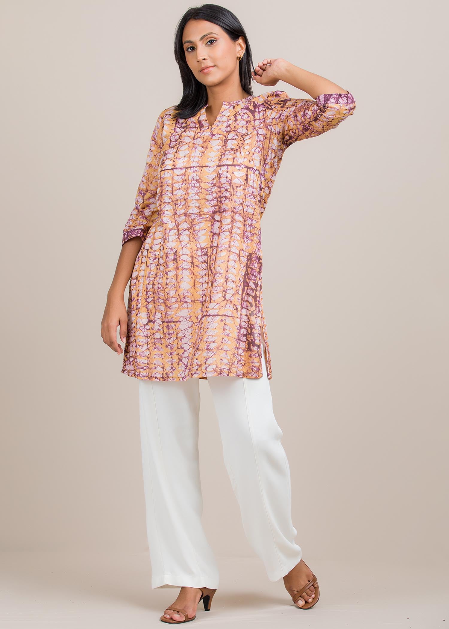 Model wears size 8. Made of cotton. batik kurtha top with cuff detailed for casual wear. Super comfortable to wear and gives you a classy look. Disclaimer - Colours may slightly vary from the picture