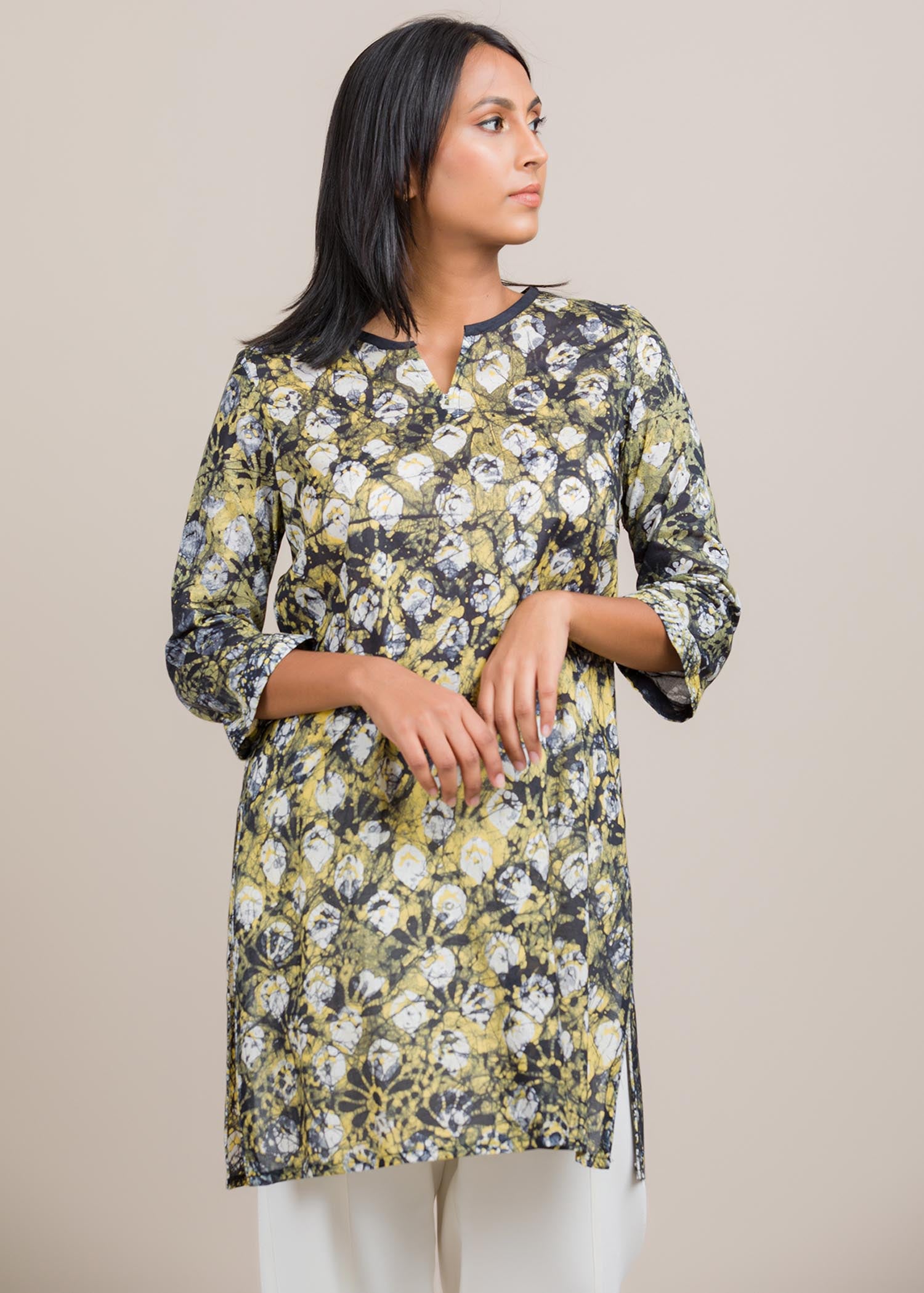 Model wears size 8. Made of cotton. kurtha top with contrass pipin for casual wear. Super comfortable to wear and gives you a classy look. Disclaimer - Colours may slightly vary from the picture
