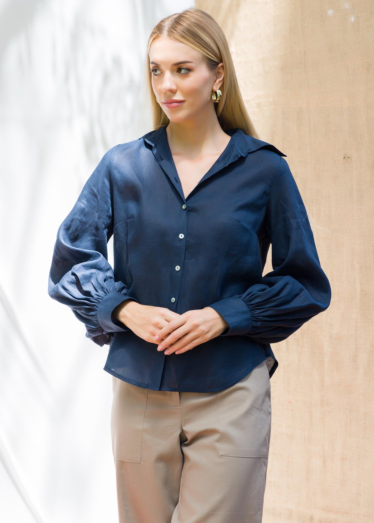 Model wears size 8. Made of 100% Linen. Ballon sleeve button down blouse for casual wear. Super comfortable to wear and gives you a classy look. Disclaimer - Colours may slightly vary from the picture.