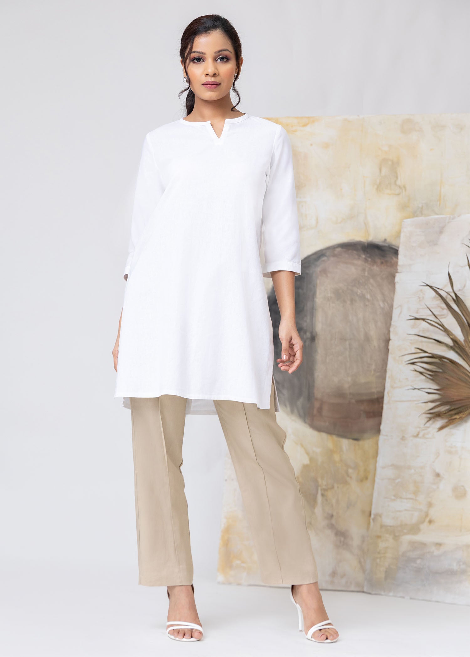 Basic linen kurtha top for casual wear. Gives you a classy look.