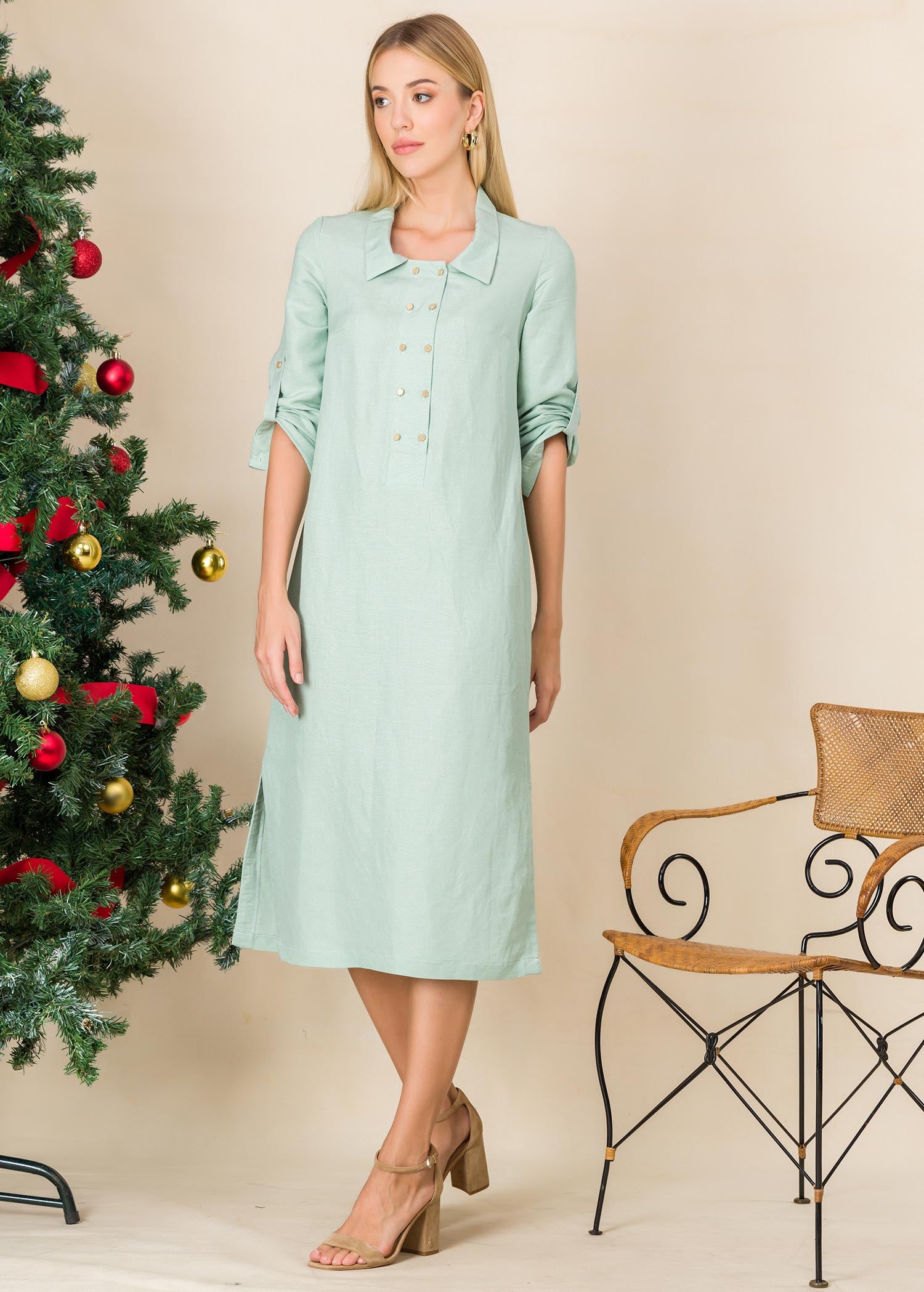 Model wears size 8. Made of Linen blend. Button detailed midi dress for casual wear. Super comfortable to wear and gives you a classy look. Disclaimer - Colours may slightly vary from the picture.