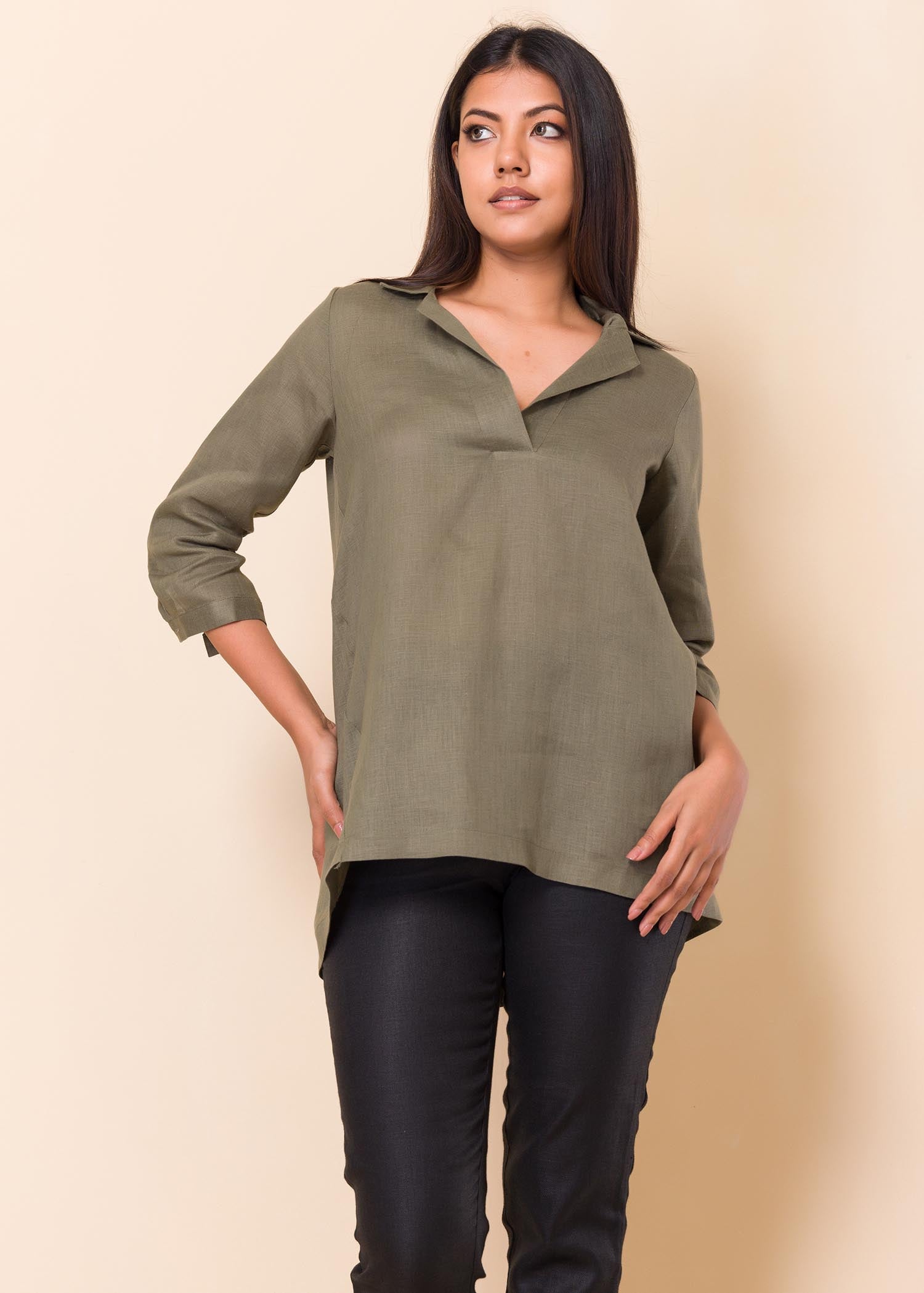 Model wears size 8. Made of Linen blend. Collar detailed blouse for casual wear. Gives you a classy look. Disclaimer - Colours may slightly vary from the picture.