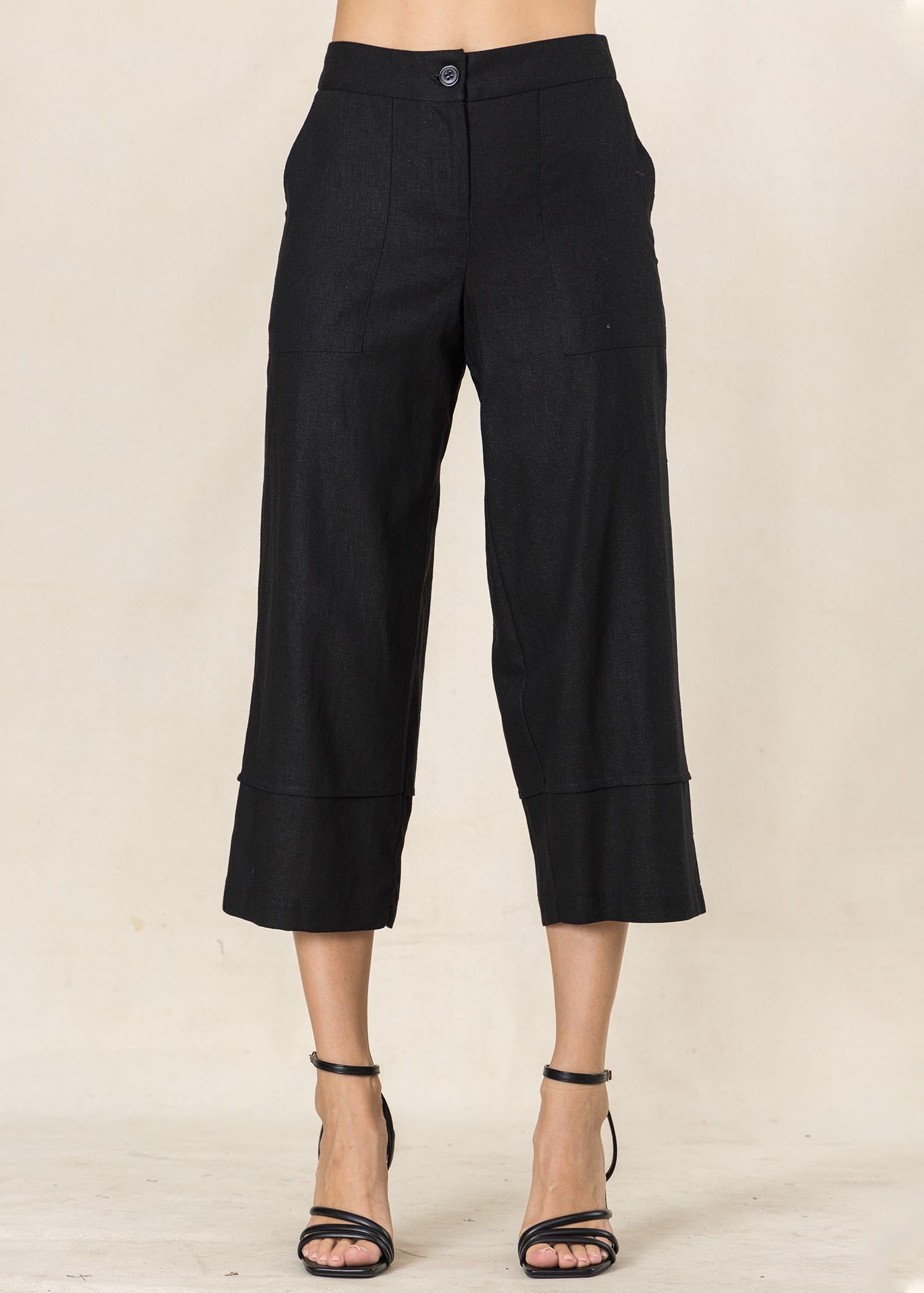 Model wears size 8. Made of Linen blend. Cropped length pant with pockets and pin tuck detail for casual wear. Super comfortable to wear and gives you a classy look. Disclaimer - Colours may slightly vary from the picture.