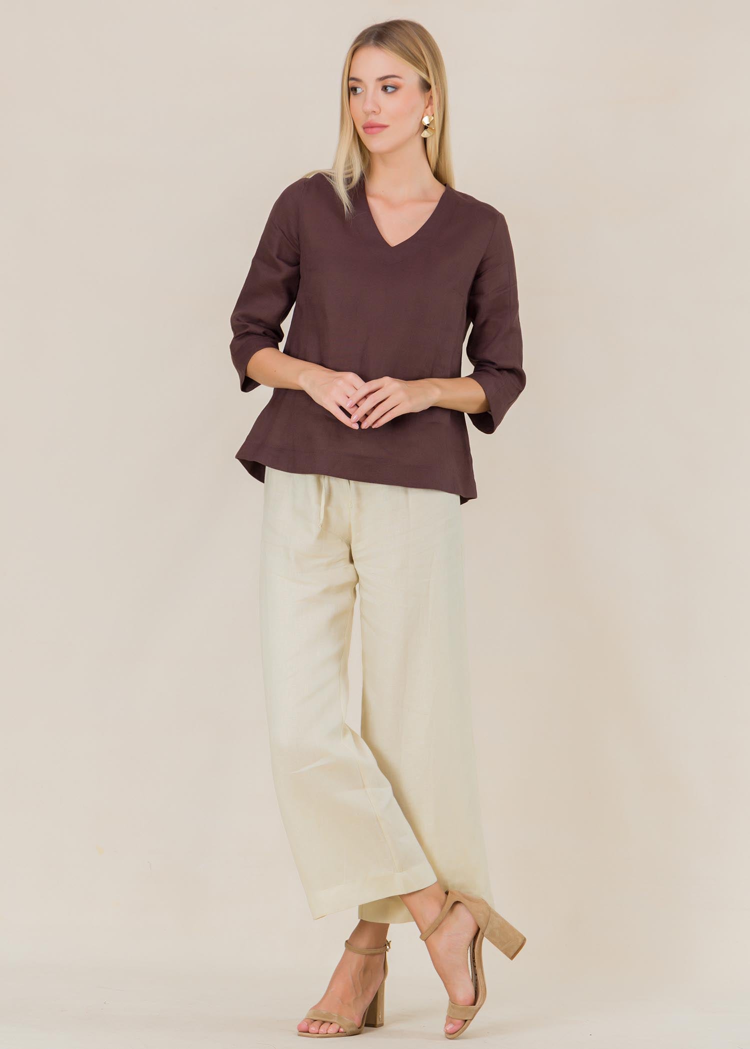V neck linen blouse