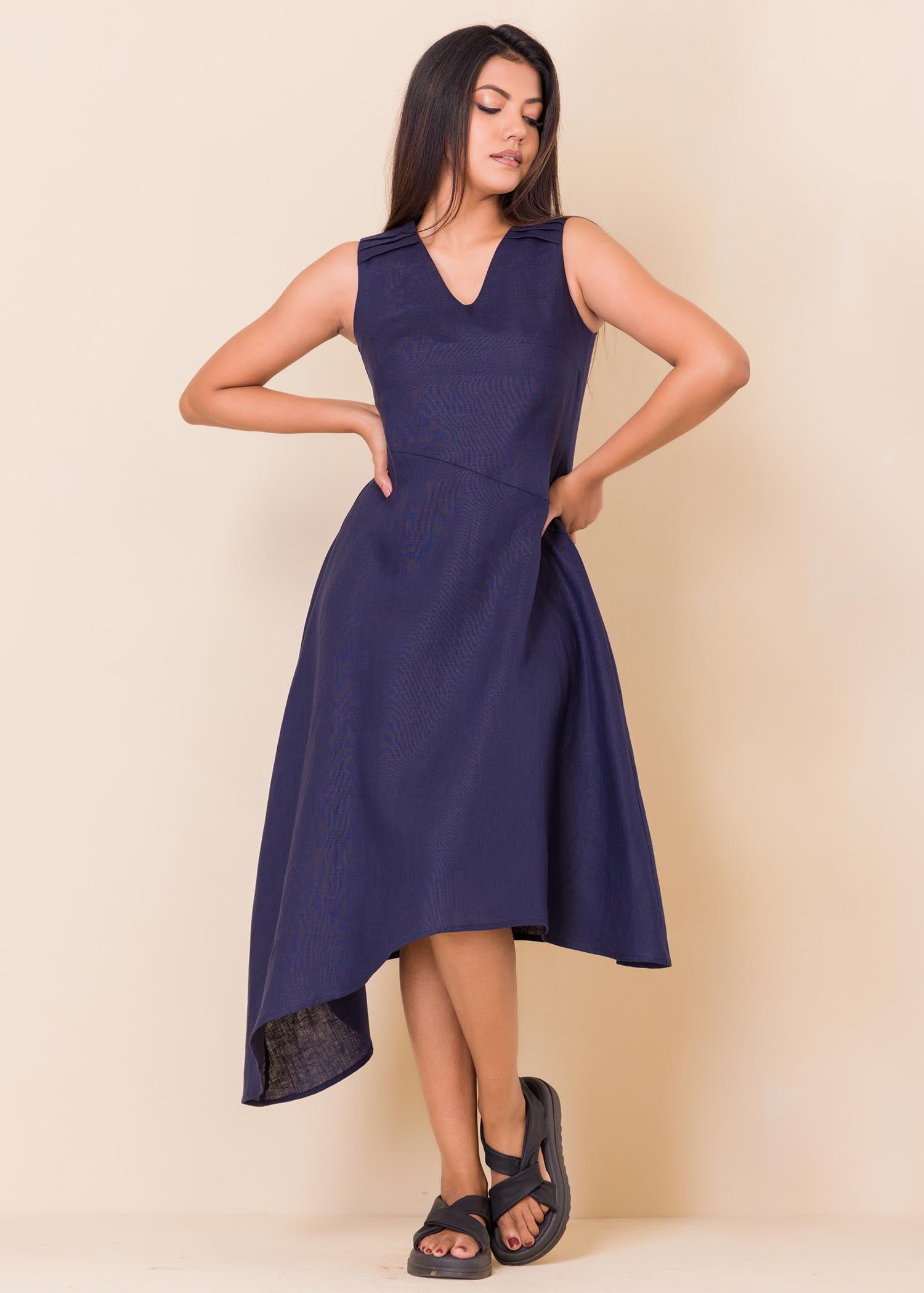 Model wears size 8. Made of 100% Linen.Sleeveless v neck linen dress for casual wear. Gives you a classy look. Disclaimer - Colours may slightly vary from the picture.