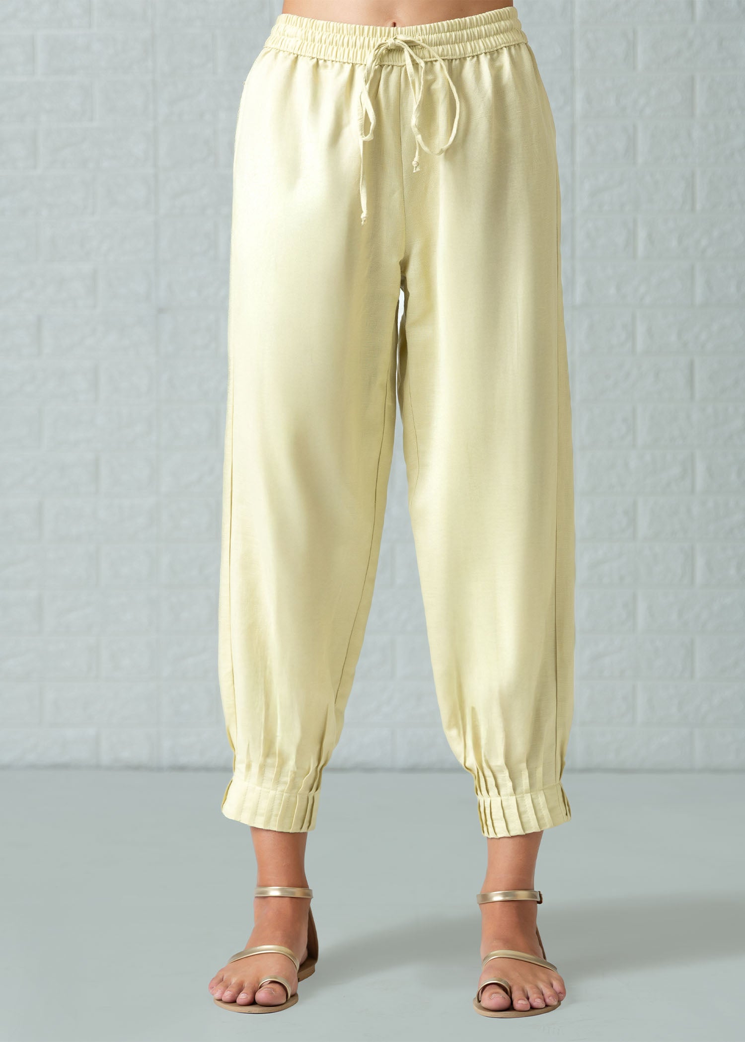 Drawcord pant with bottom pin tucks for casual wear. Gives you a classy look.