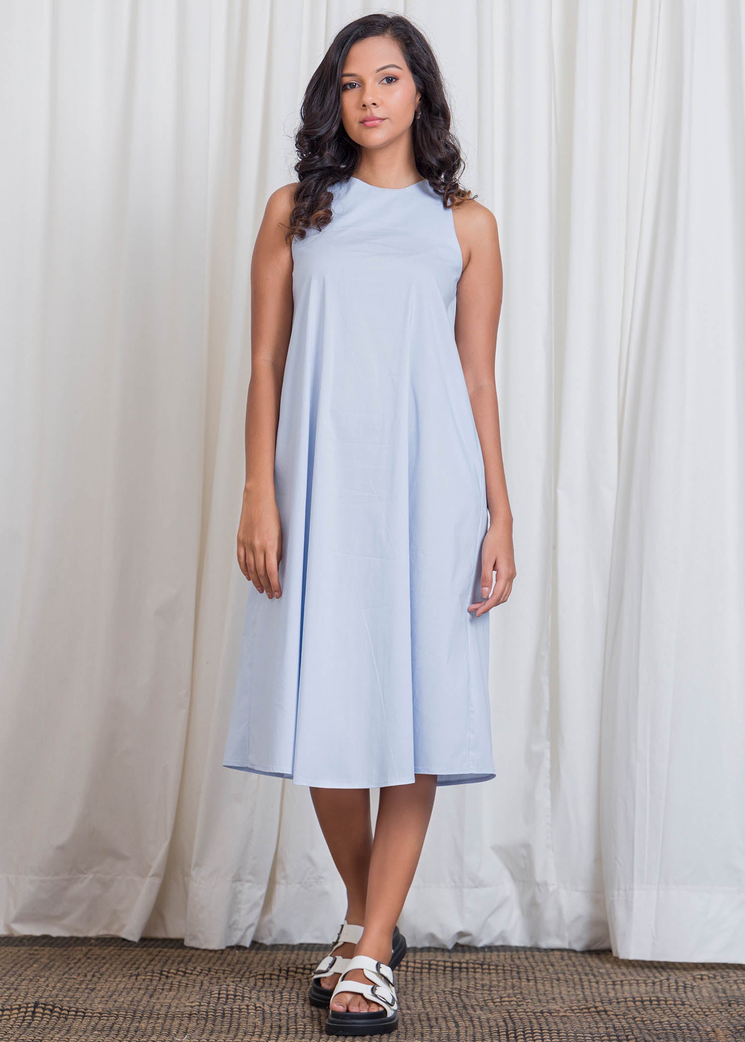 Back elastic detailed sleeveless trapeze dress for Casual wear. Gives you a classy look.