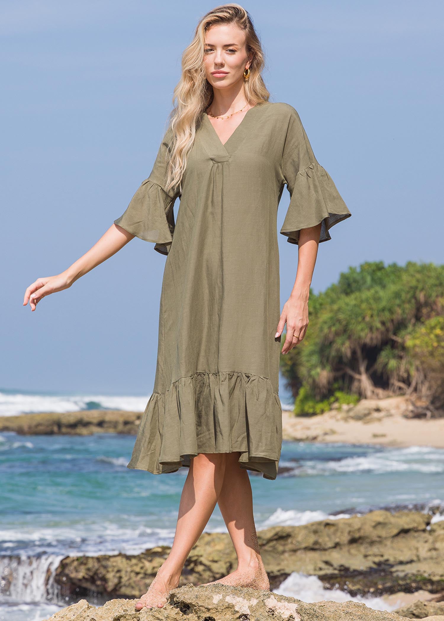 Model wears size 8. Made of Rayon. Flouncy Dress for resort wear. Gives you a classy look. Disclaimer - Colors may slightly vary from the picture.