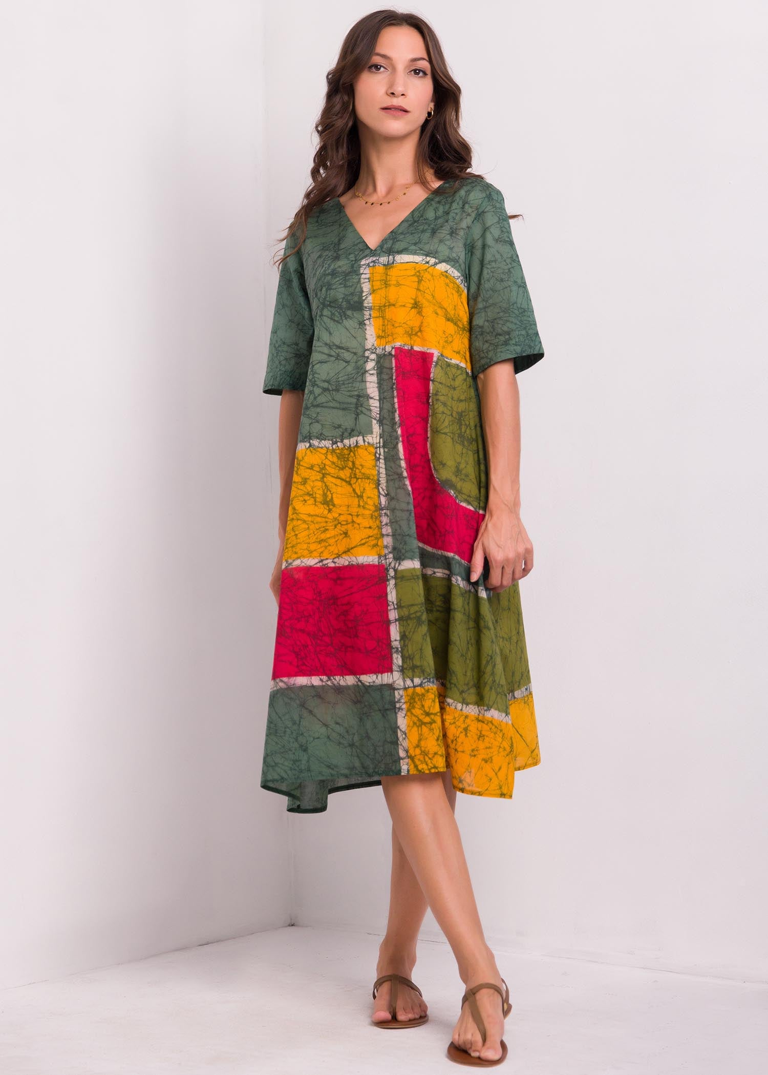 Model wears size 8. Made of cotton. Geomatric Shapes Detailed Batik Dress for Casual wear. Gives you a classy look. Disclaimer - Colors may slightly vary from the picture.