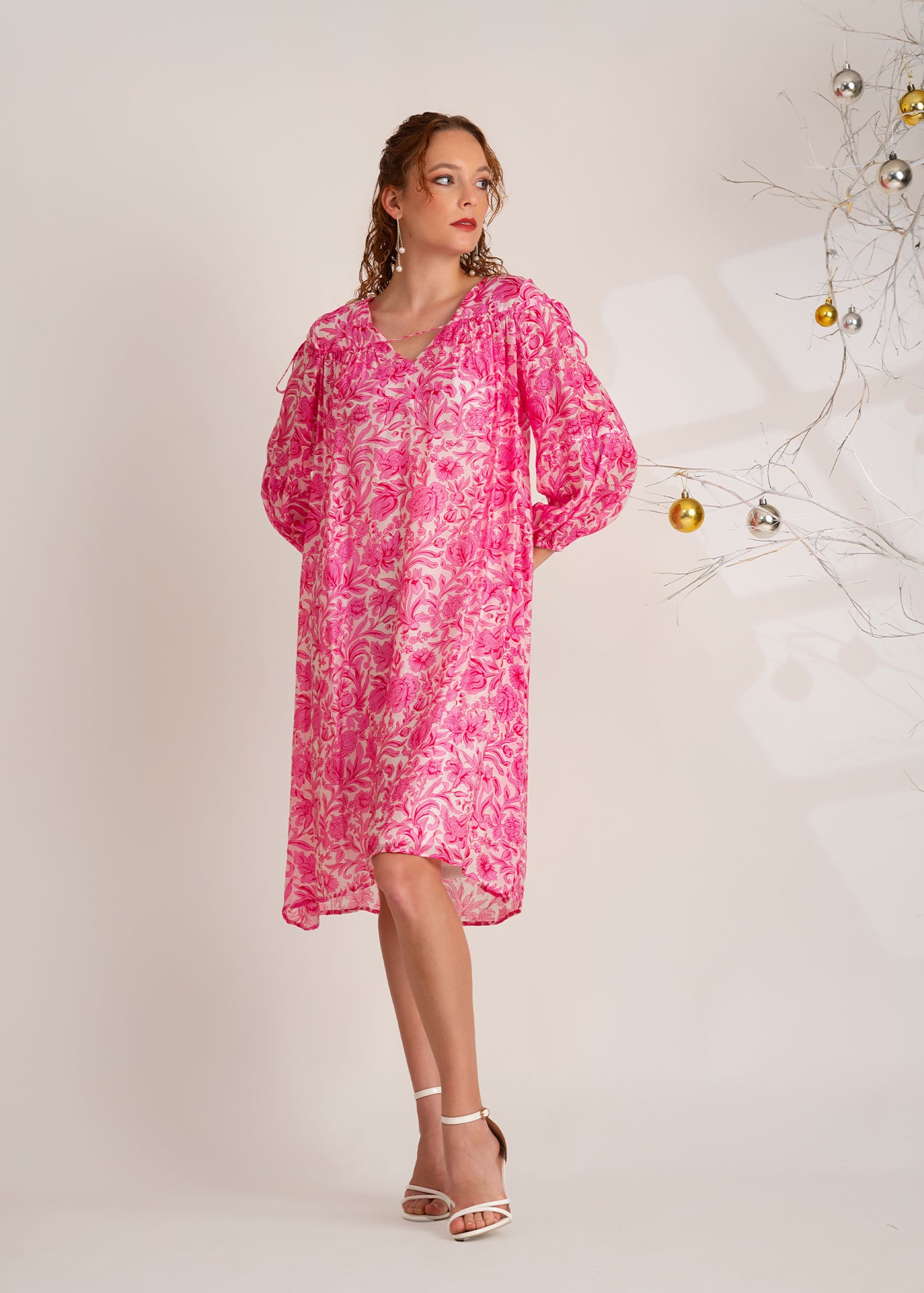 Long sleeve printed v neck dress for Occasion wear. Gives you a classy look.