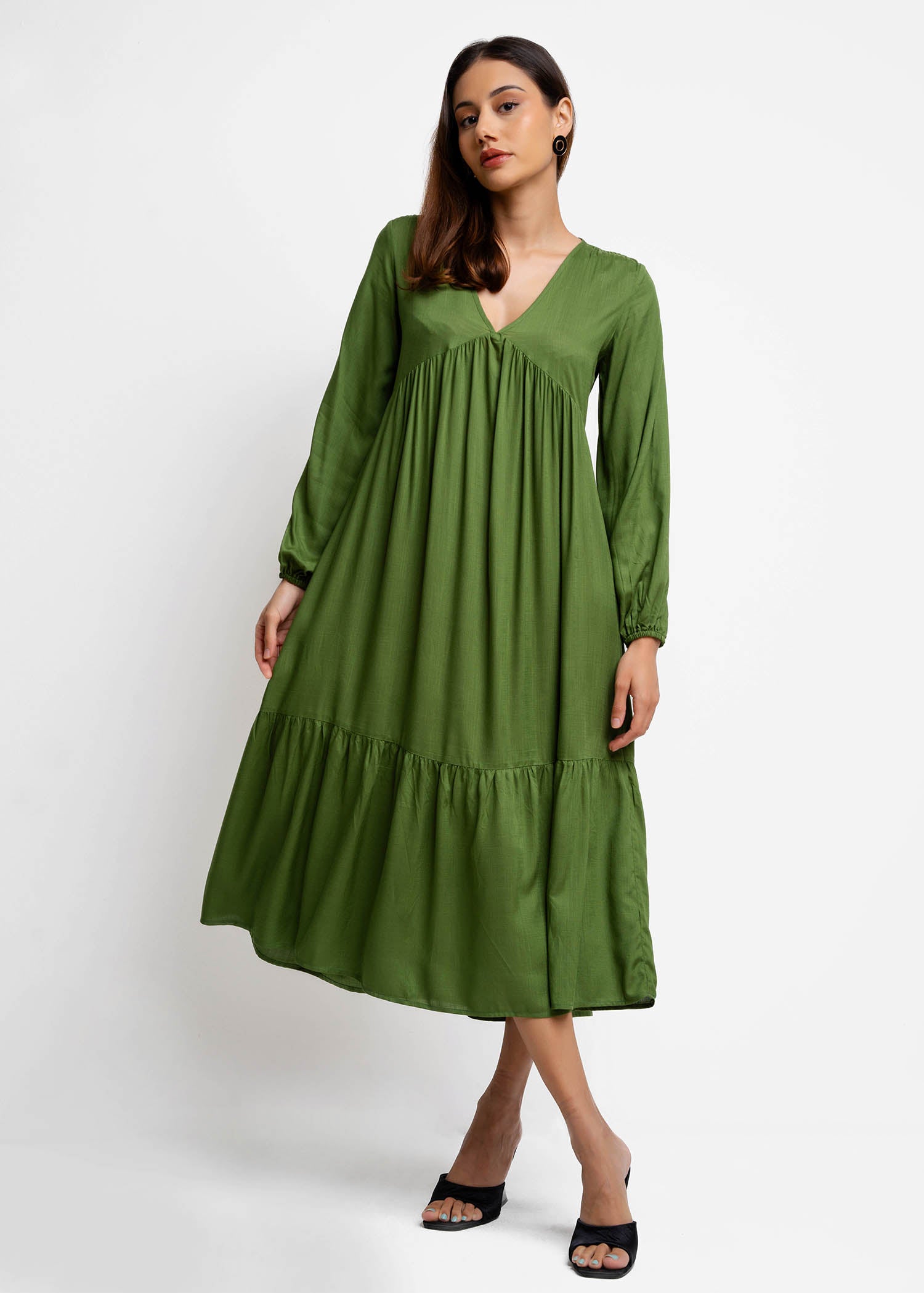 Long sleeve v neck tiered dress for occasion wear. Gives you a classy look.