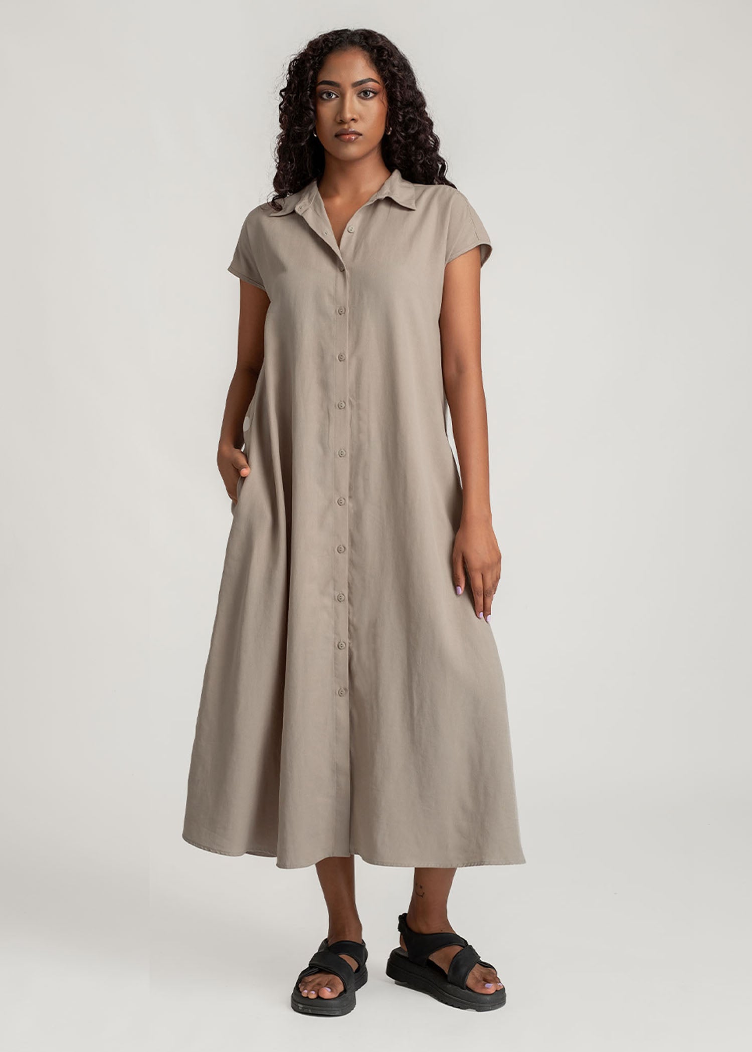 Oversize button down midi dress for casual wear. Gives you a classy look.