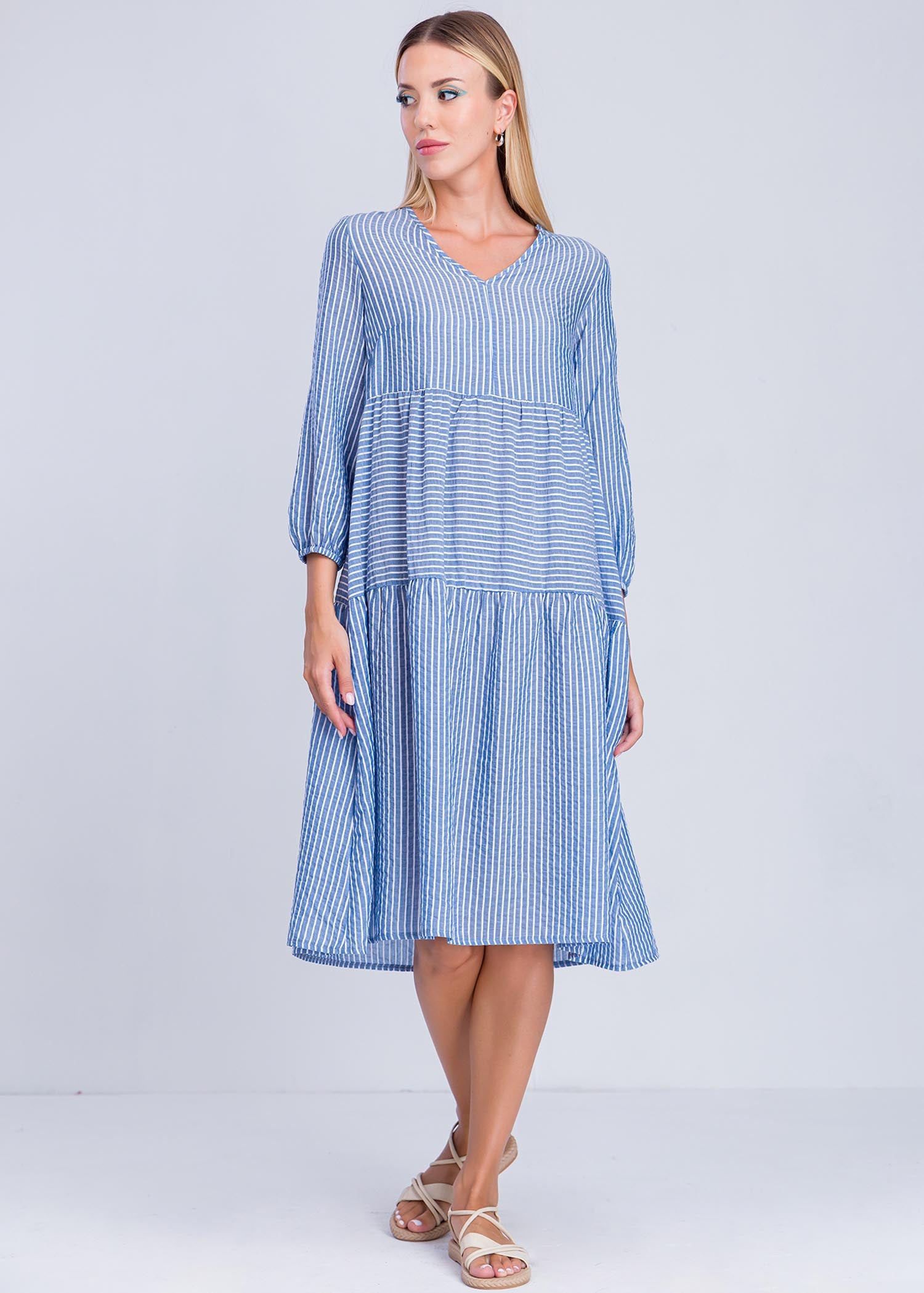 Model wears size 8. Made of Cotton. Tired panel stripe dress for casual wear. Gives you a classy look. Disclaimer - Colors may slightly vary from the picture.