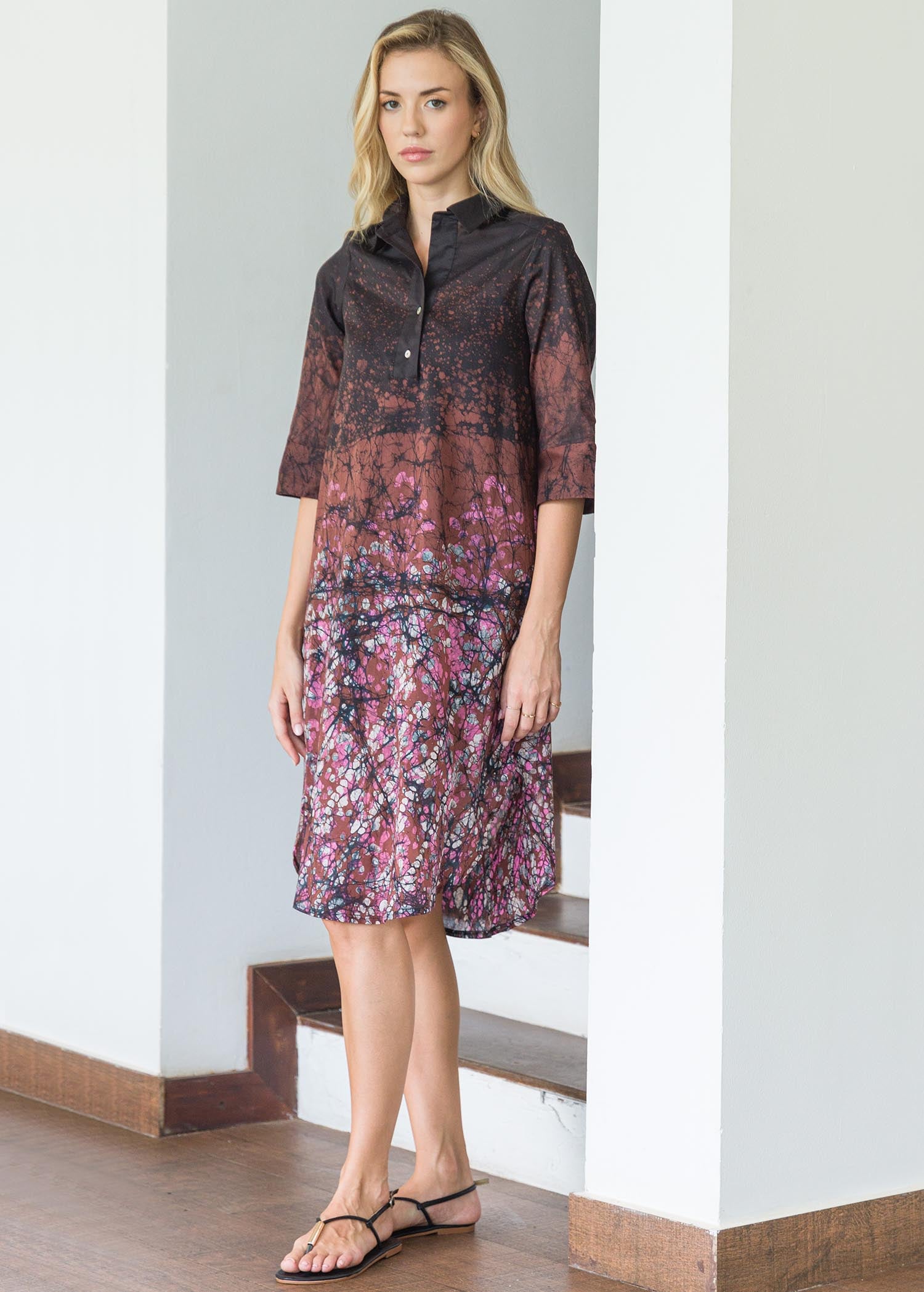 Model wears size 8. Made of Cotton. Batik flower branches printed shirt dress for casual wear. Gives you a classy look. Disclaimer - Colors may slightly vary from the picture.