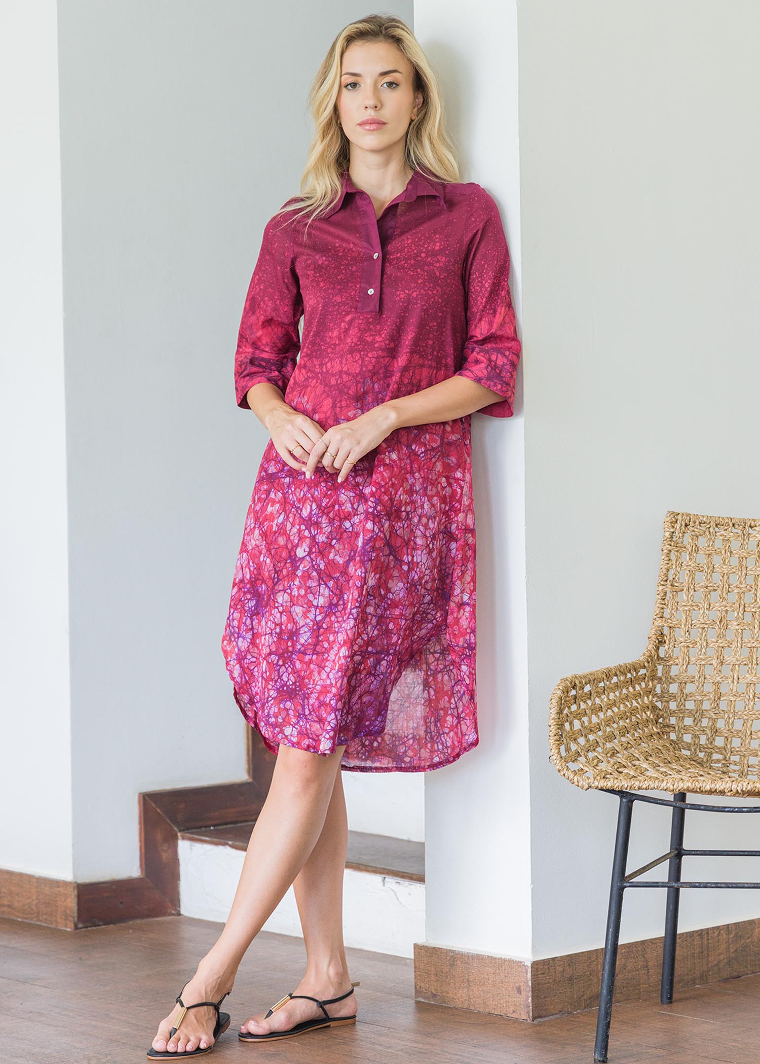 Model wears size 8. Made of Cotton. Batik flower branches printed shirt dress for casual wear. Gives you a classy look. Disclaimer - Colors may slightly vary from the picture.