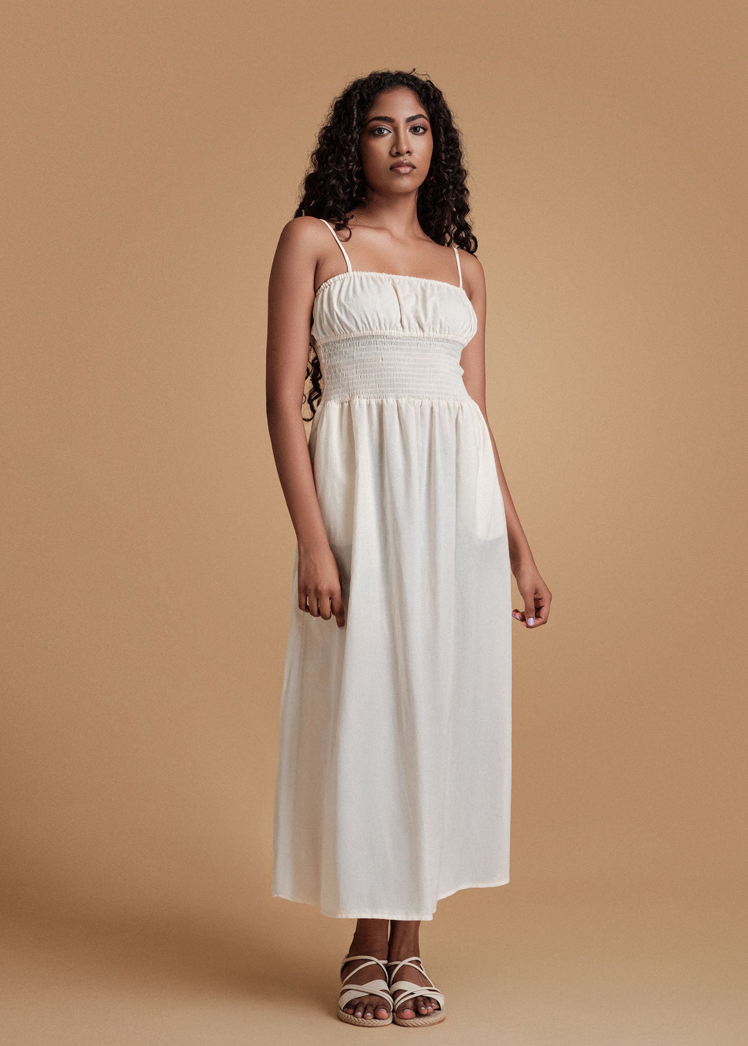 Strappy midi dress with smocking detail for casual wear. Gives you a classy look.