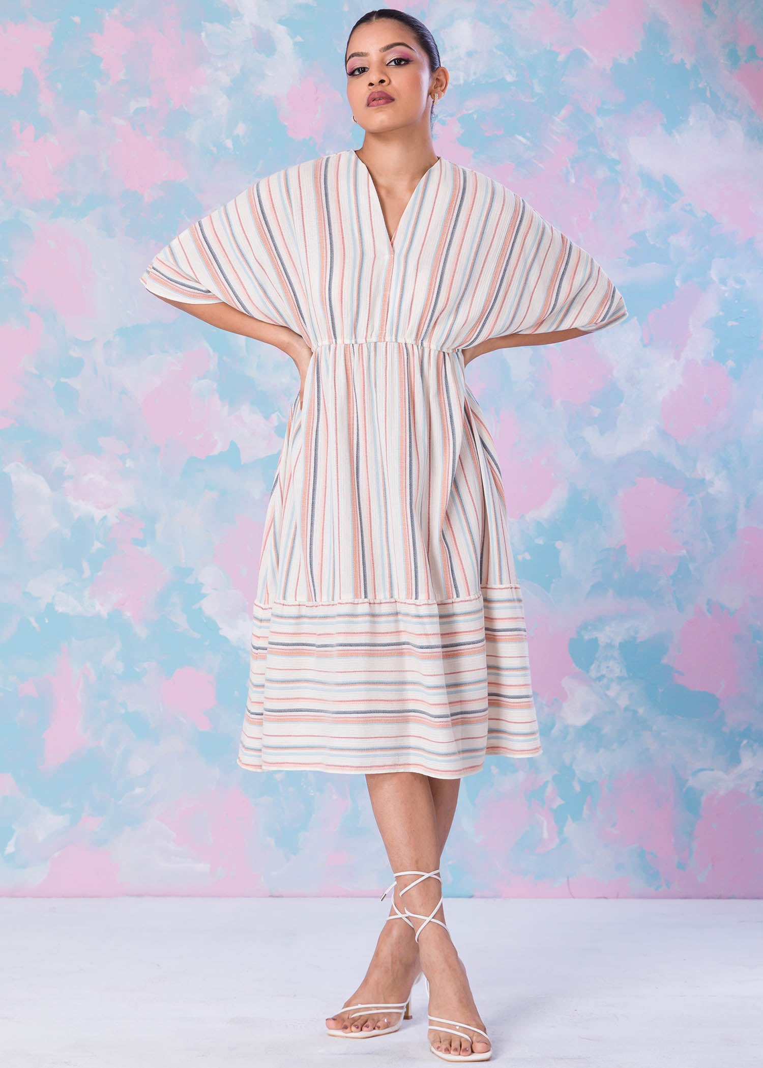 Stripe Dress With Batwing Sleeve for Casual wear. Gives you a classy look.