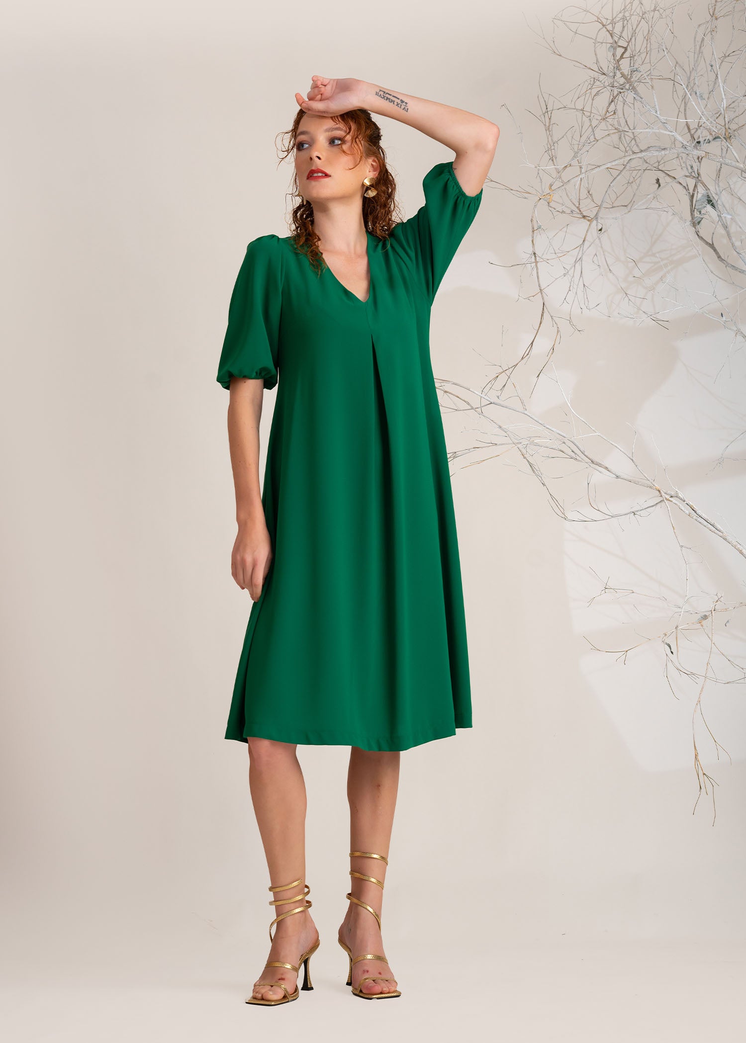 V neck flowy dress with front pleat for Occasion wear. Gives you a classy look.