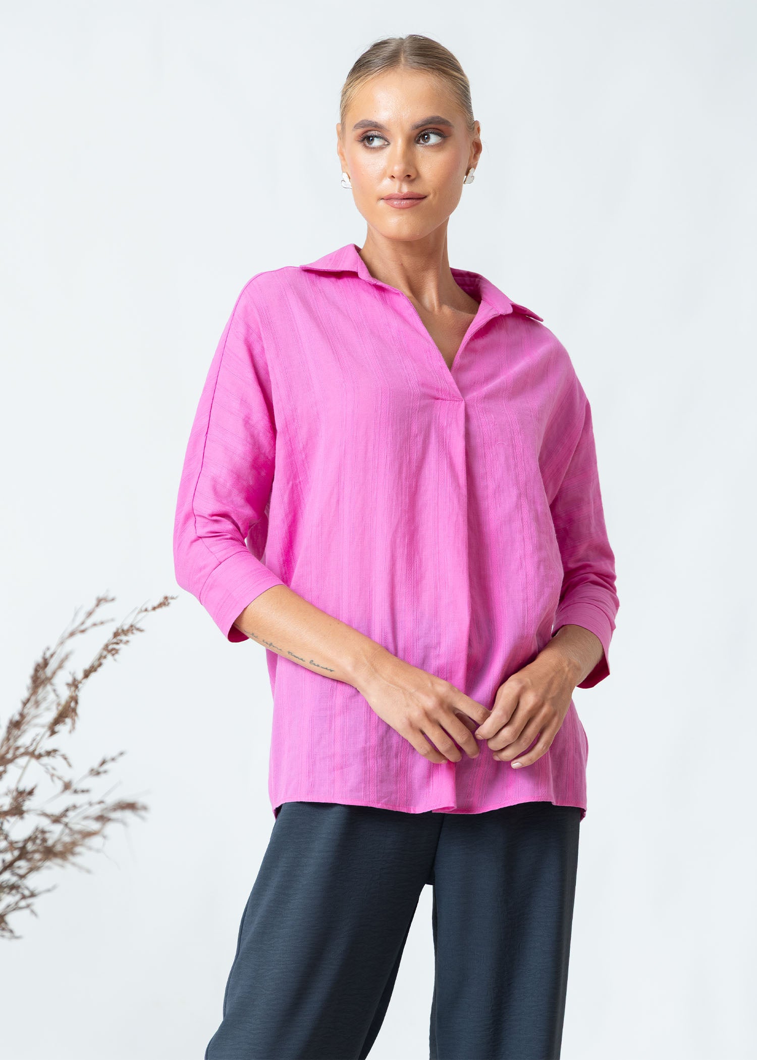 Dolman sleeve blouse with collar for casual wear. Gives you a classy look.