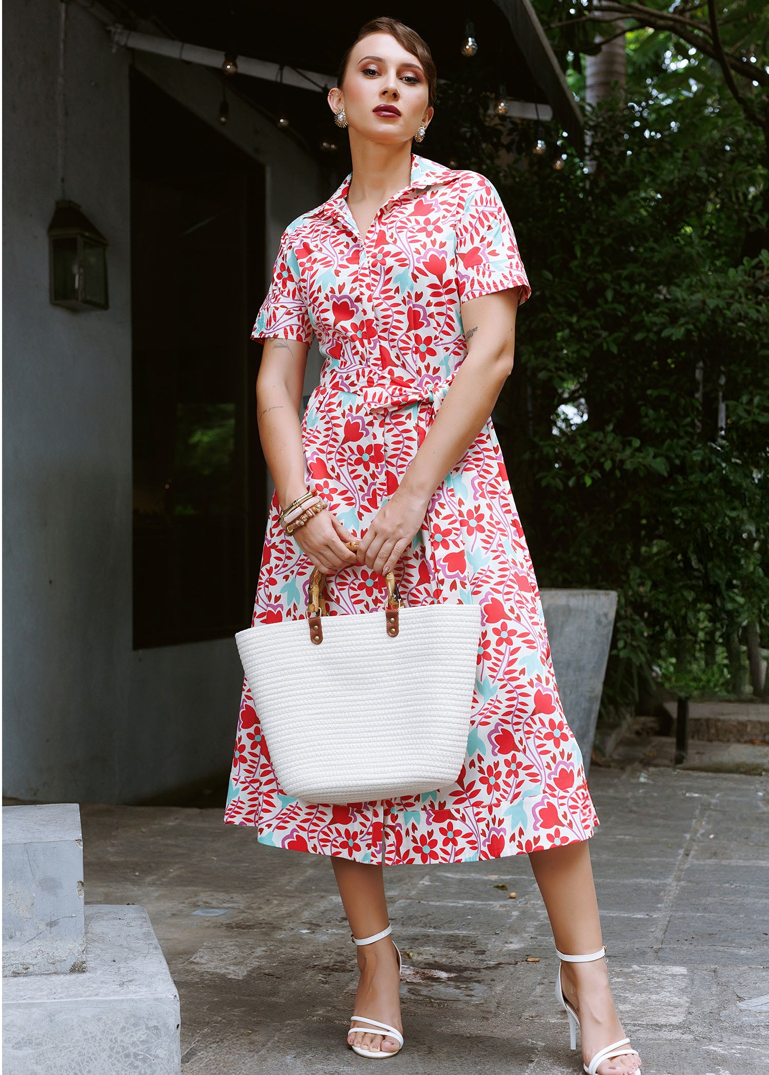 Printed cotton shirt dress with top stitch detail on cuff for casual wear. Gives you a classy look.