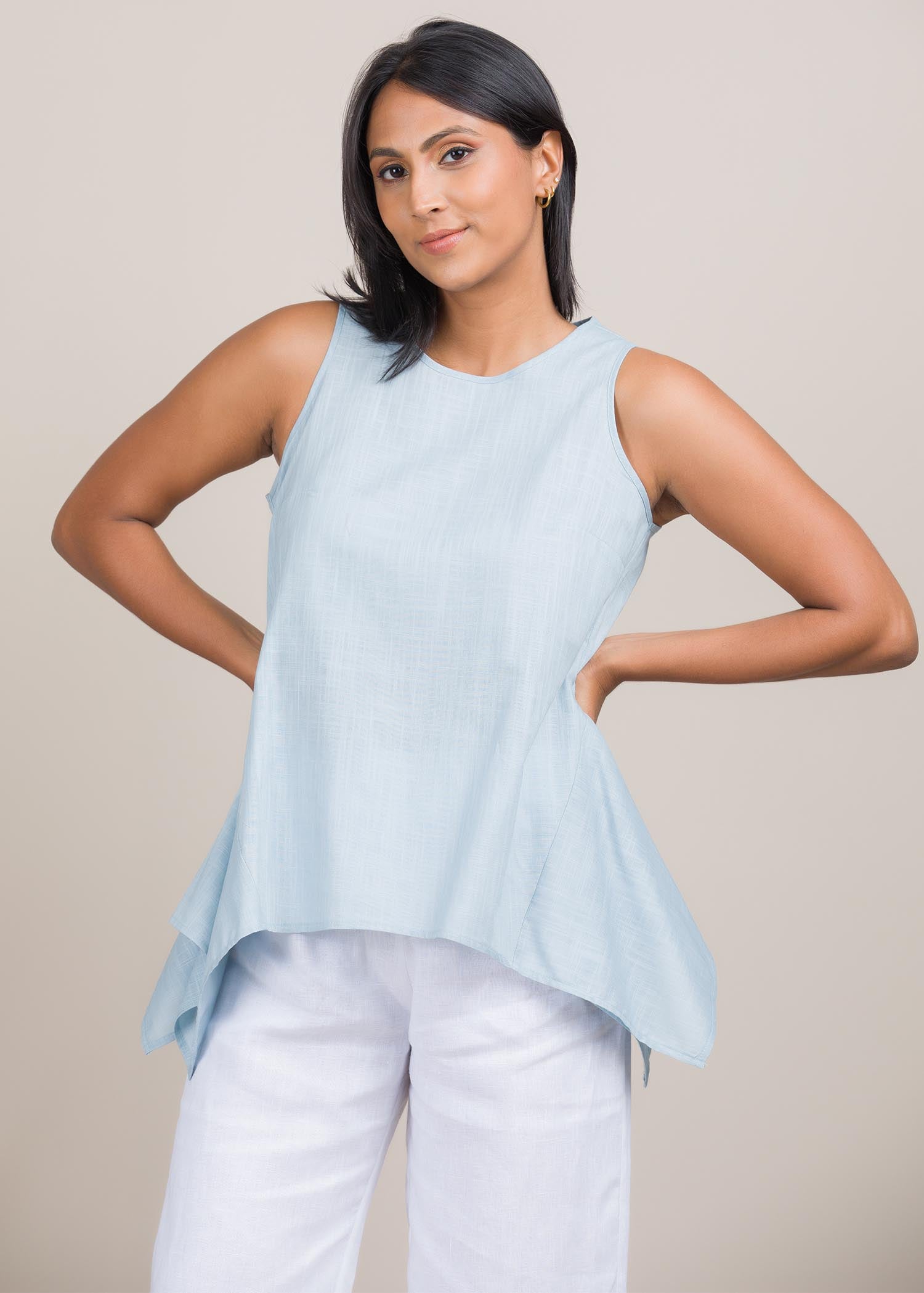 Model wears size 8. Made of Linen blend. Sleeveless blouse for casual wear. Super comfortable to wear and gives you a classy look. Disclaimer - Colours may slightly vary from the picture.