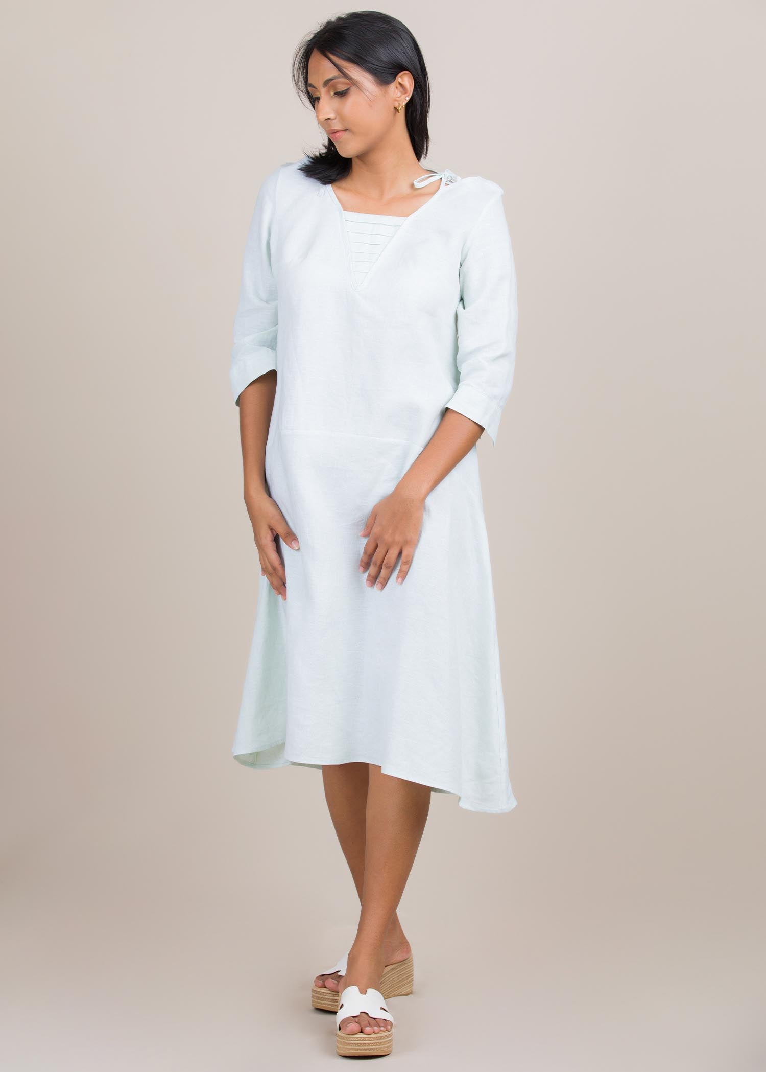 Model wears size 8. Made of cotton blend. Tie detailed dress for casual wear. Super comfortable to wear and gives you a classy look. Disclaimer - Colours may slightly vary from the picture.