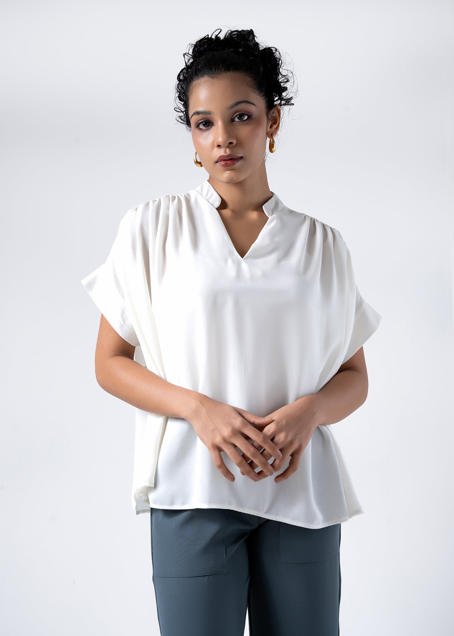 Shirring detailed oversized blouse for Casual wear. Gives you a classy look.