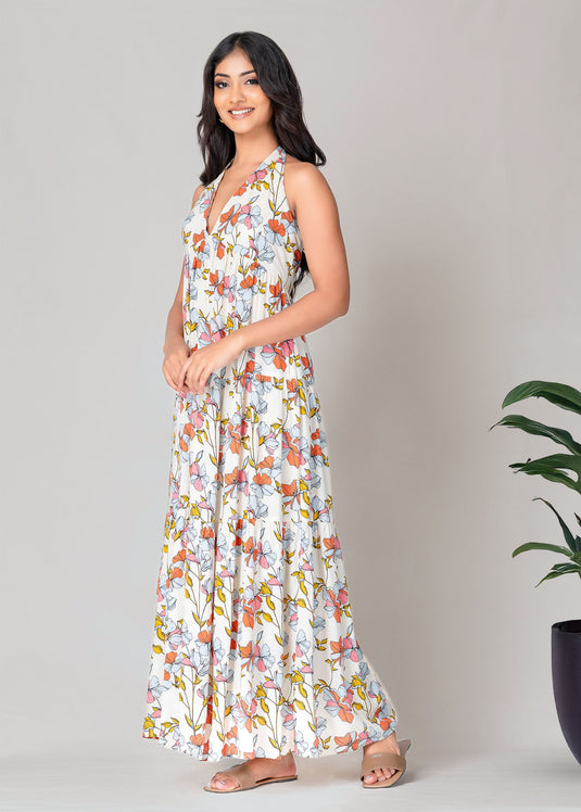 Halter neck maxi dress for casual wear. Gives you a classy look.