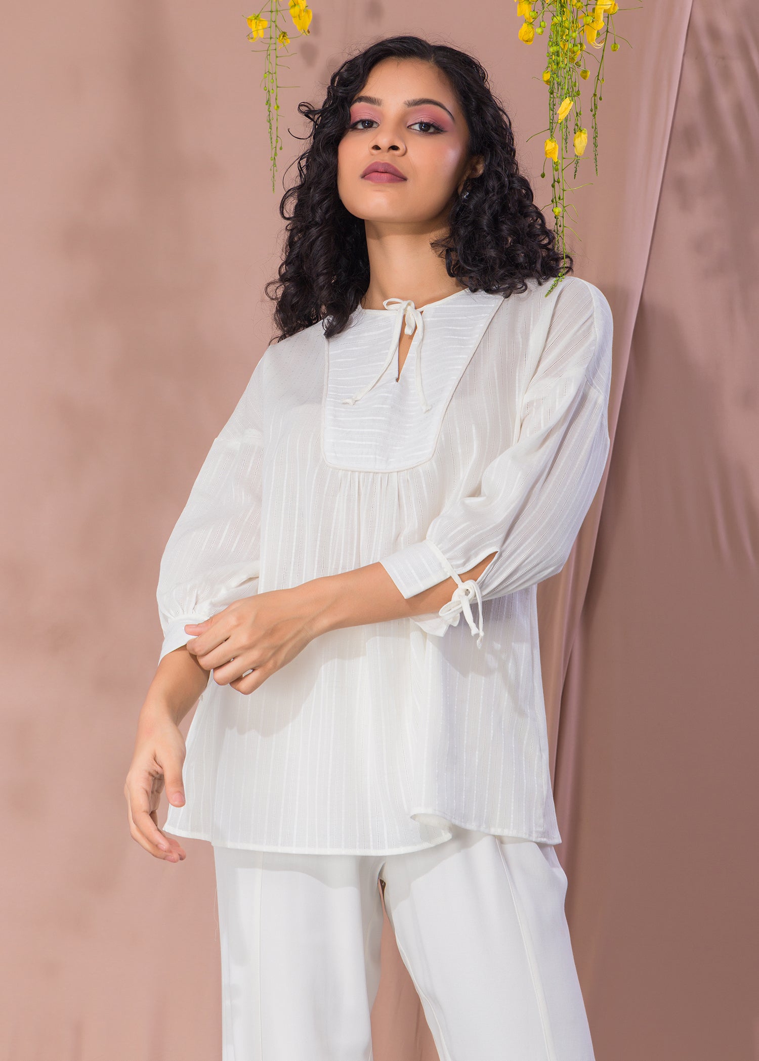 White Blouse With Tie Detail for casual wear. Gives you a classy look.