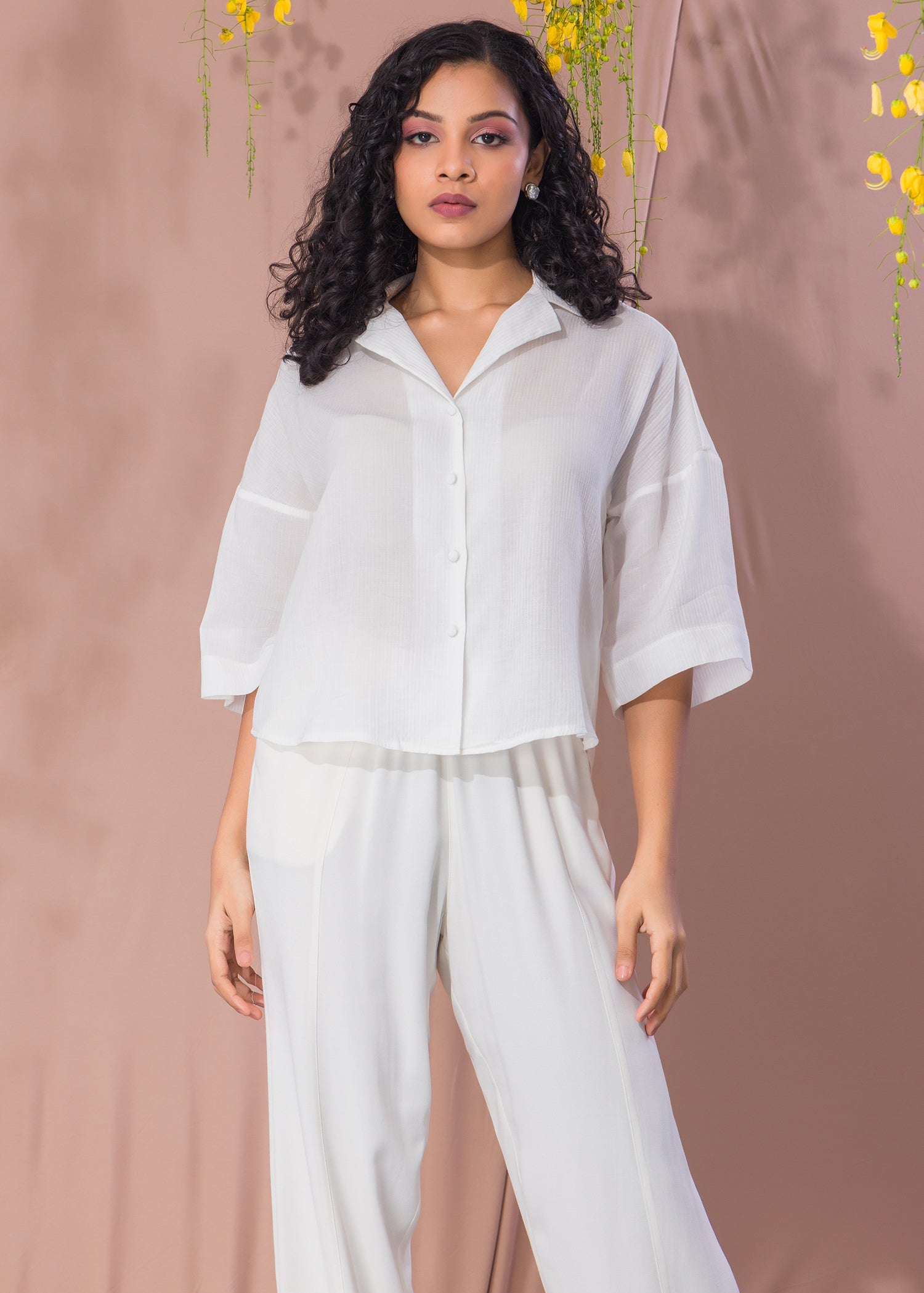 Name | White Drop Shoulder Blouse With Cuban Collar |