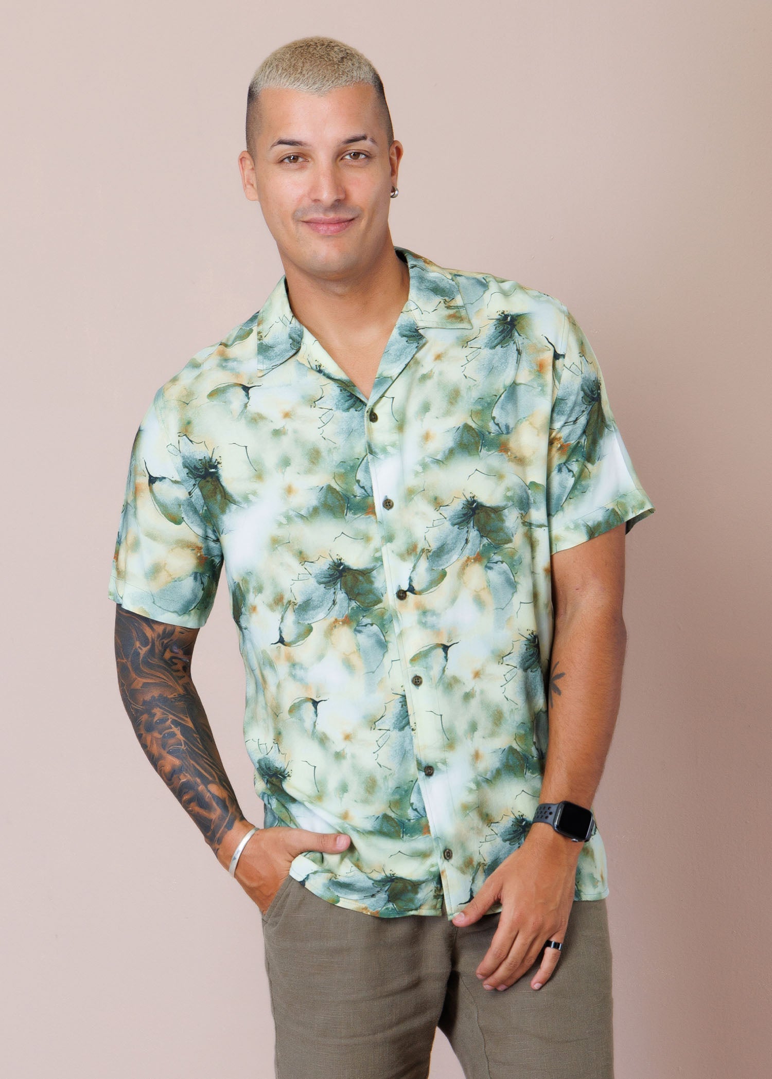 Casual Wear Cuban Collar S/S Shirt. Model is wearing Large, Model height - 6ft. Made of Viscose. - Colors may slightly vary from the picture.
