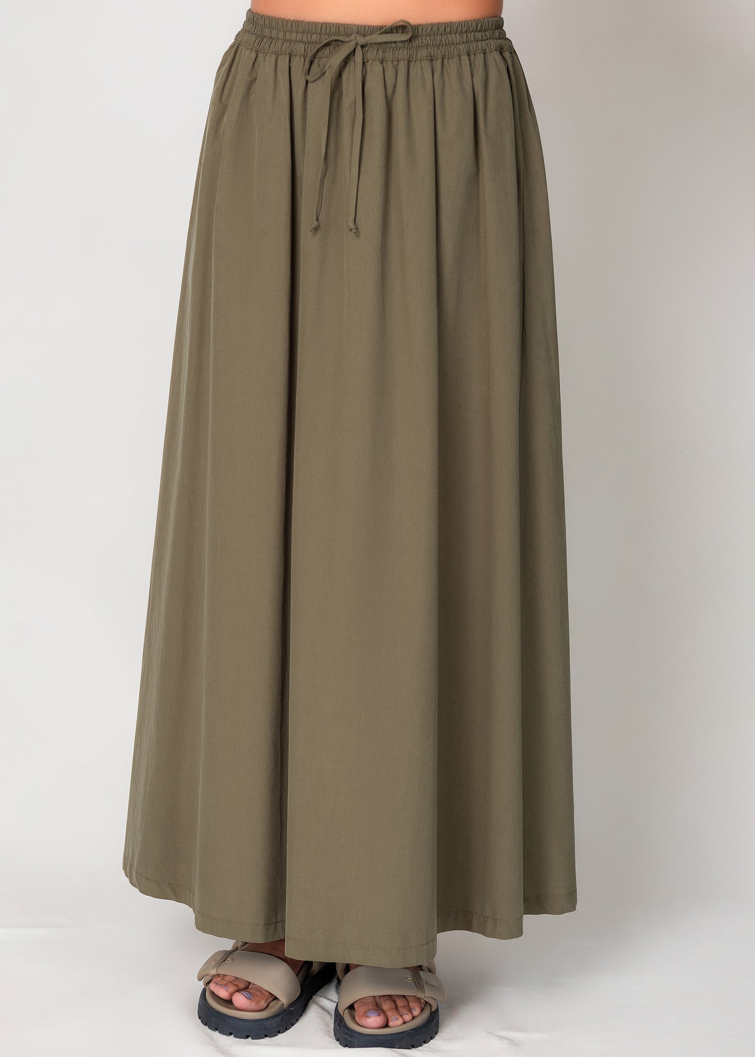 Drawcord maxi skirt for casual wear. Gives you a classy look.