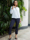 Mandarin collar long sleeve blouse with contast piping for Formal wear. Gives you a classy look.