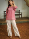 Puff sleeve Ramie blouse with neck detail for casual wear Gives you a classy look.