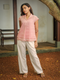 Shawl collar Ramie blouse with front pleat for casual wear Gives you a classy look.