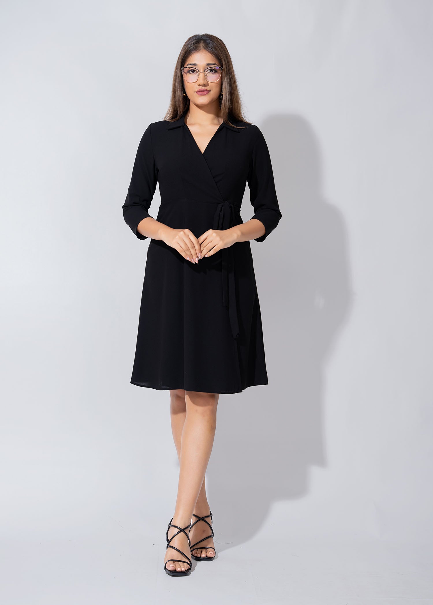Three Quarter Sleeve Wrap Dress for Formal Wear. Gives you a classy look.