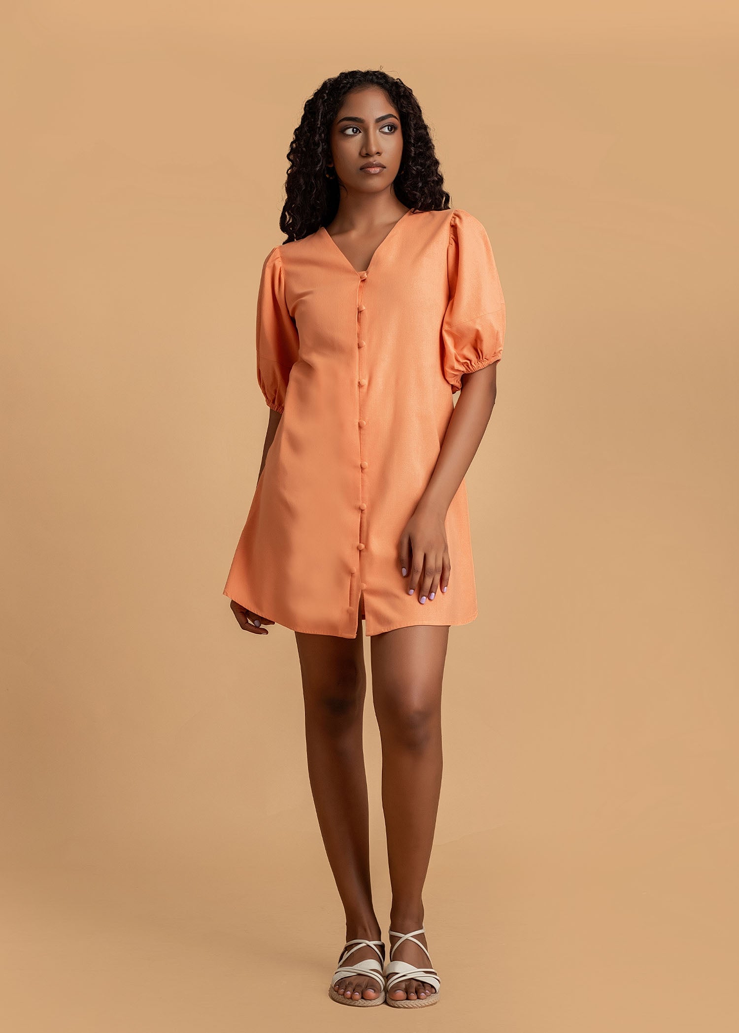 V Neck short dress with puff sleeve for casual wear. Gives you a classy look.